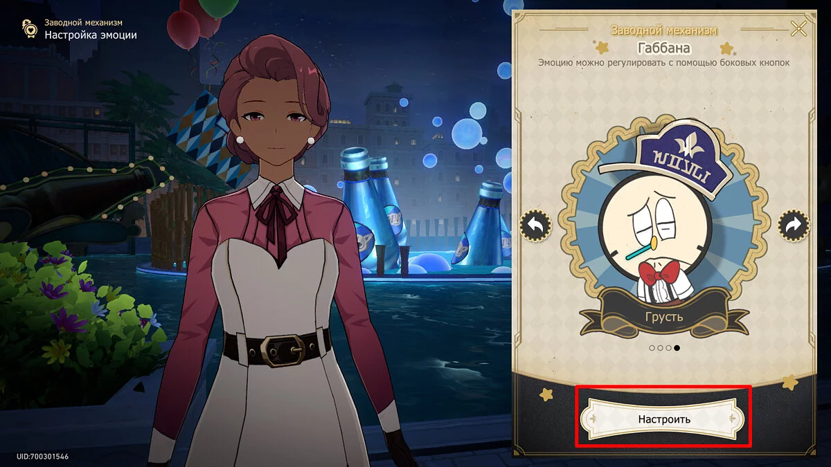 Поговоріть з дівчиною і запустіть заводний механізм. В ньому змініть емоцію NPC на смуток, після чого зможете отримати кілька копій страв на відновлення енергії — «Банановий етикет».