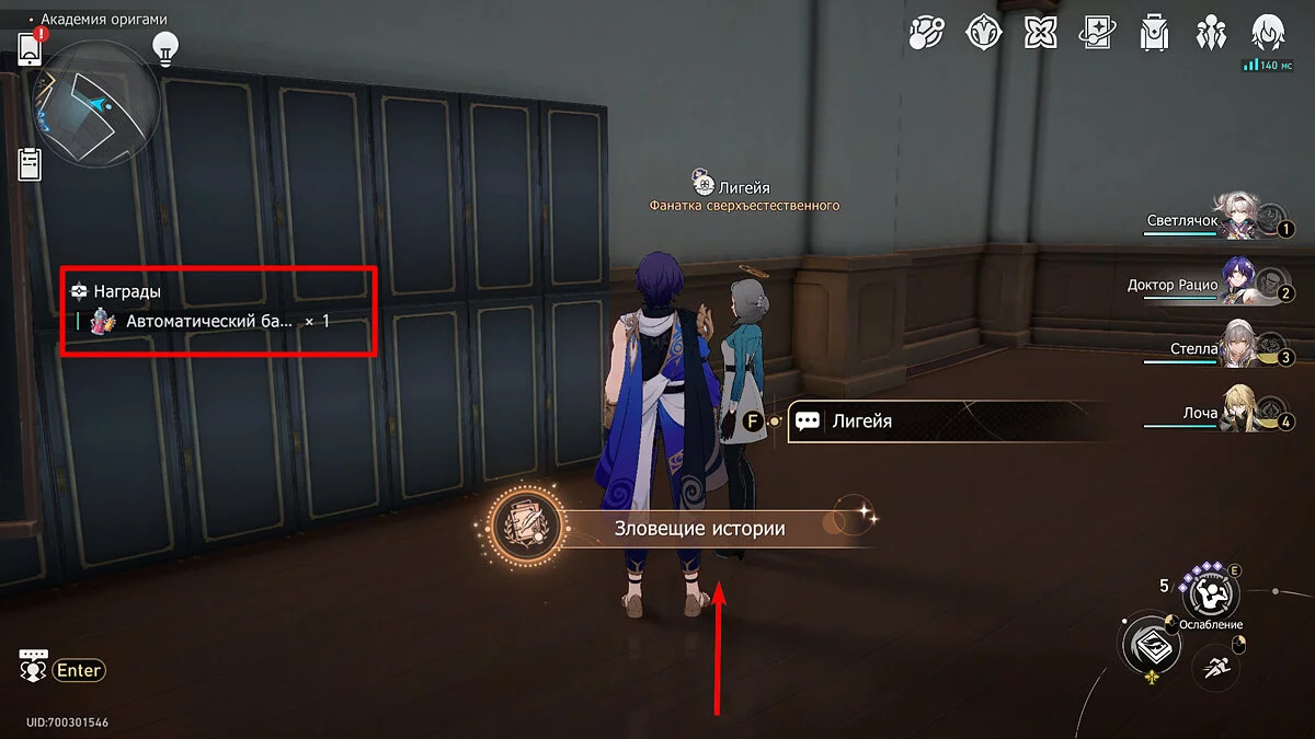 Поверніться в загальний коридор і не звертаючи, біжіть до його кінця. Біля шафок ви зустрінете дівчину на ім'я Лігейя — любительку надприродного. Поговоріть з NPC і застосуйте заводний механізм.