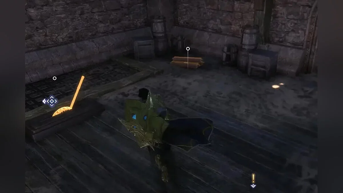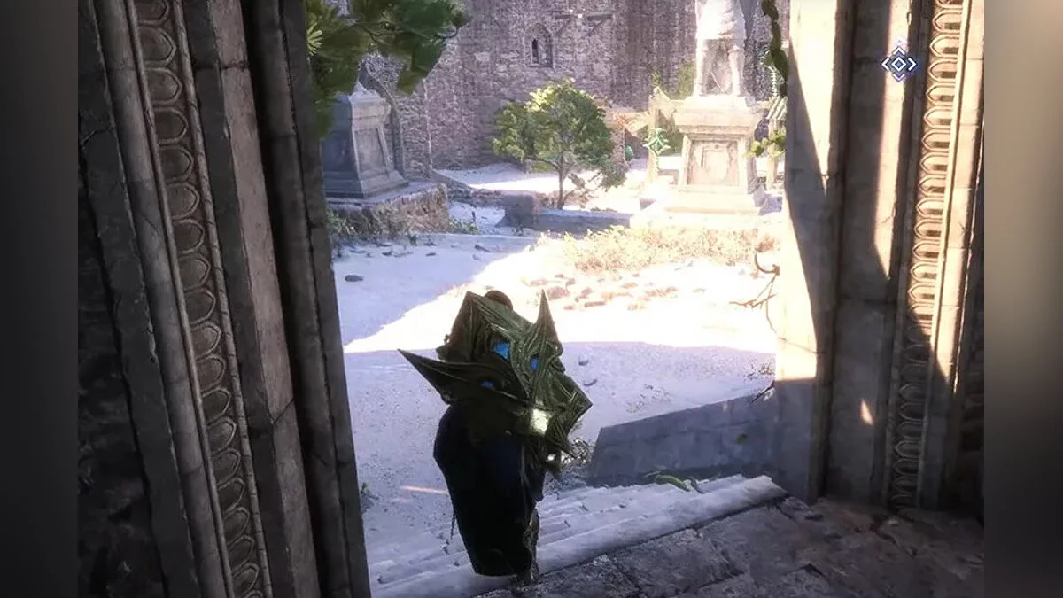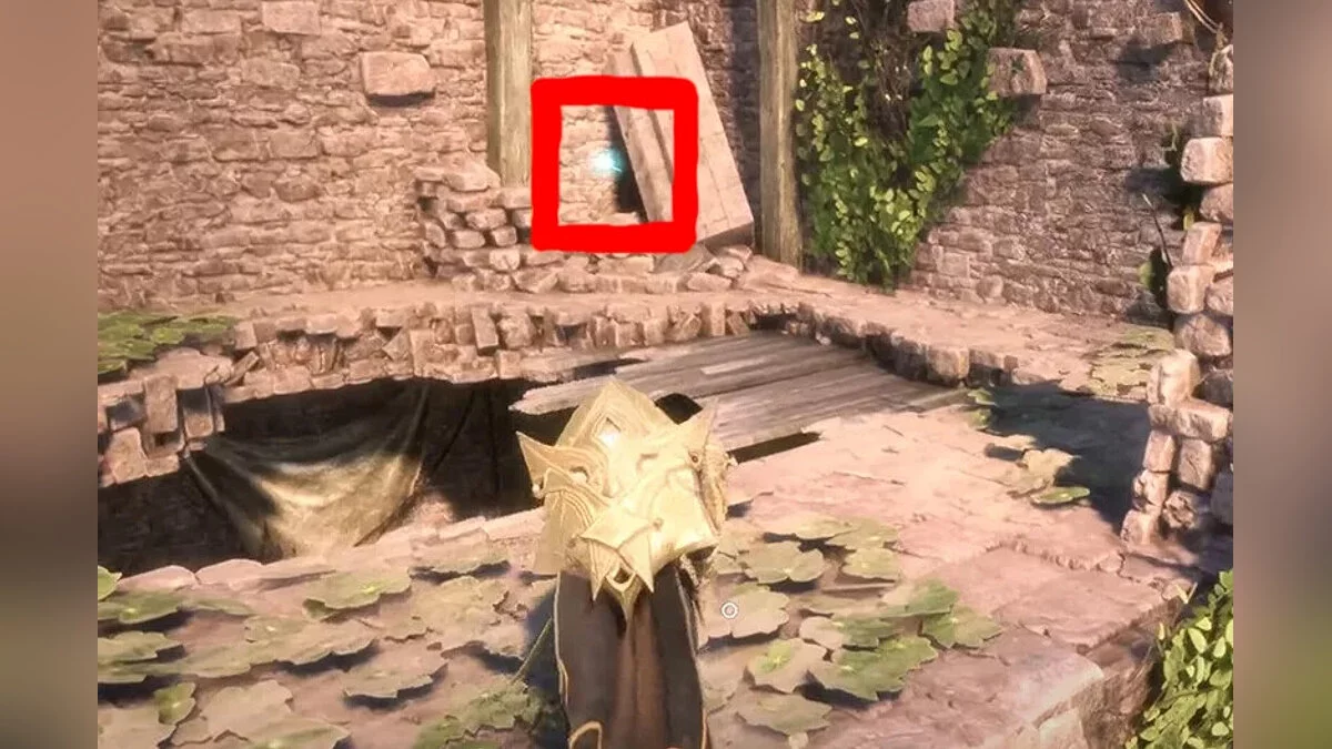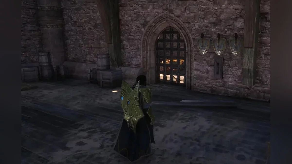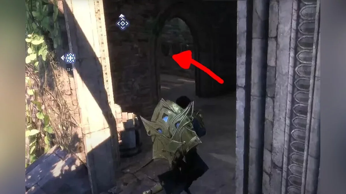 Якщо не відкривати великі залізні ворота, то доведеться зробити крюк. Після появи в точці швидкого переміщення йдіть стежкою справа через арку. Продовжуйте слідувати дорогою і підніміться по сходах. Заберіться на дерев'яну платформу і увійдіть у кімнату в кінці стежки.