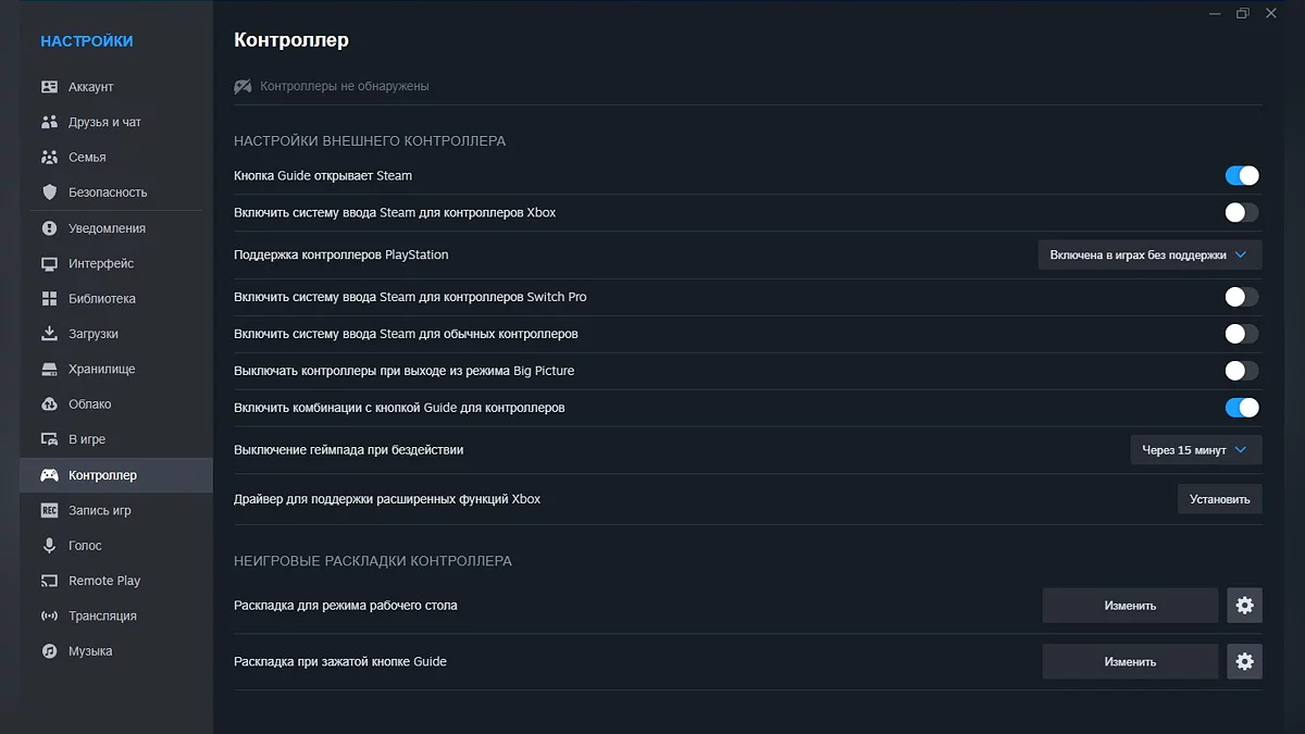 Налаштування Steam — оверлей і параметри контролера
