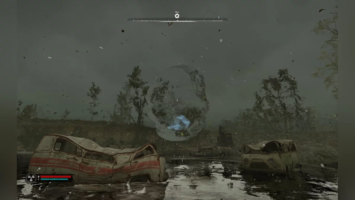 Крім того, зверніть увагу на об'єкти поблизу — вони також можуть реагувати на вплив аномалії. Наприклад, карета швидкої допомоги, що знаходиться всього в кількох метрах від епіцентру, буде то стискатися, то повертатися у своє звичайне положення, що слугує додатковим сигналом про потужний вплив «Бульби».