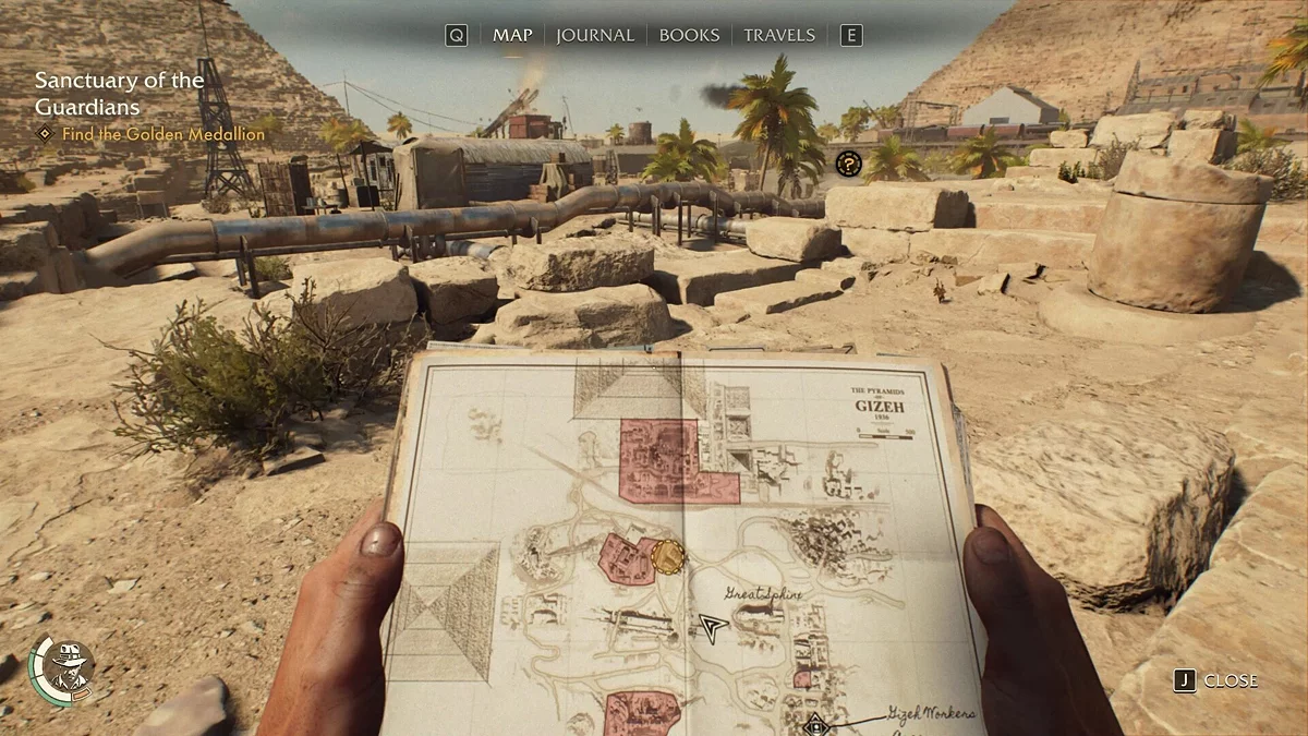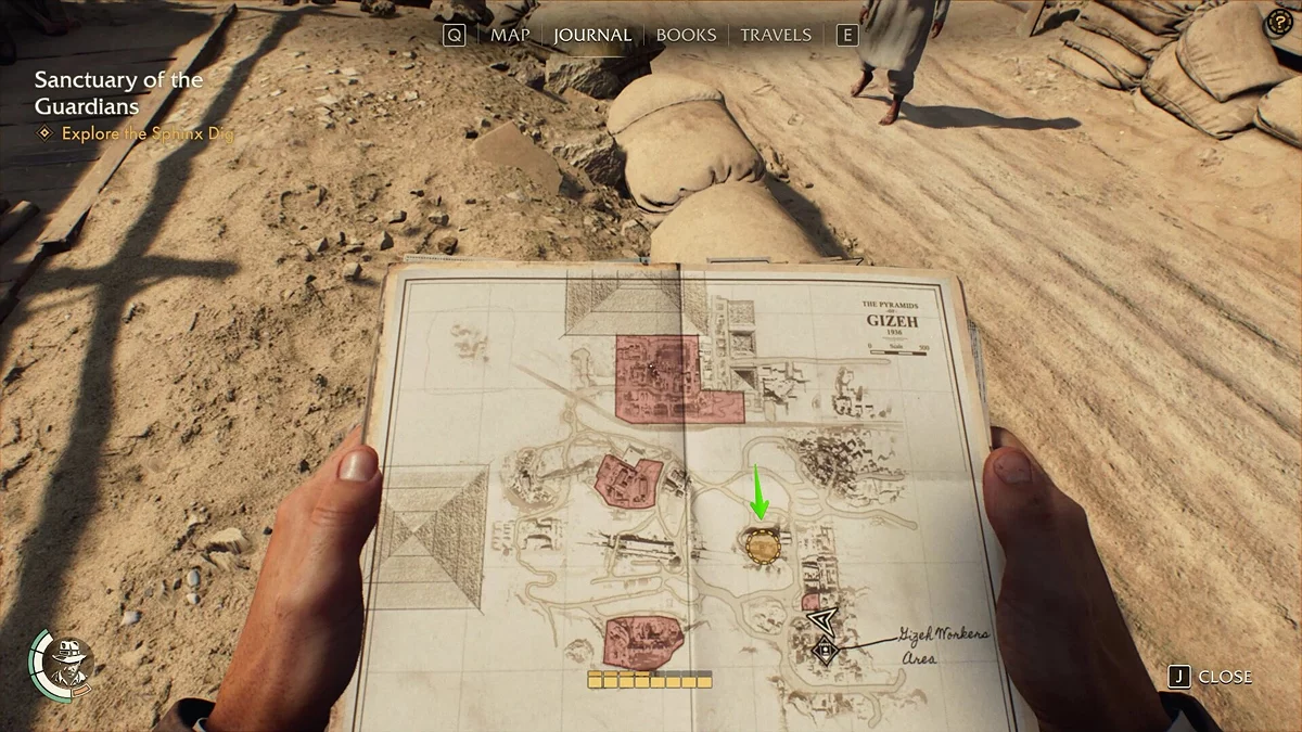 Після діалогу з Джиною на карті з'явиться маркер. Він приведе вас прямо до підніжжя статуї Сфінкса, де також чекатимуть німецькі військові. Позбутися останніх не складно — для цього всього лише потрібно використати підручні предмети.