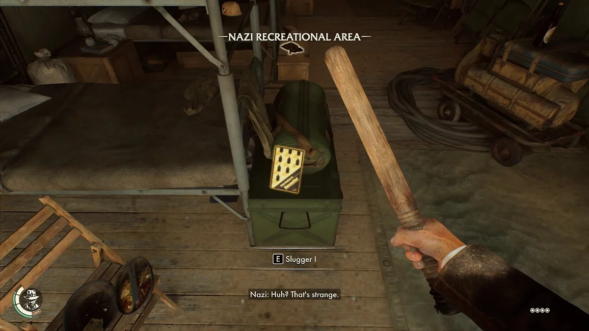 Однак це не наша основна мета. Бігти далі через черговий табір нацистів. В одному з них, прямо між вашою метою та метеорологічною станцією, можна знайти книгу навичок Slugger I. Будьте уважні, адже в цій області досить багато військових. Але ми віддаємо перевагу позбавлятися від них. У цьому ж таборі можна виявити пляшечку з ліками і трохи грошей.