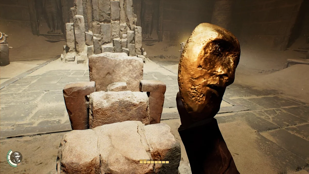 Підберіть золоту маску і дивіться катсцену, в якій Джина присідає на трон, а потім величезна кам'яна плита разом з героями провалюється на кілька рівнів вниз.