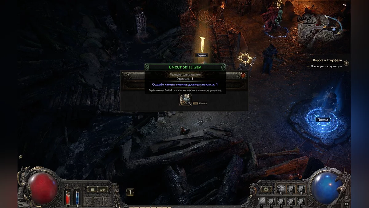 Тепер увійдіть у поселення і поговоріть з чоловіком на ім'я Ренлі. На знак подяки за перемогу над босом він запропонує викувати для вас зброю, а також дасть предмет для побічного завдання — Uncut Skill Gem.