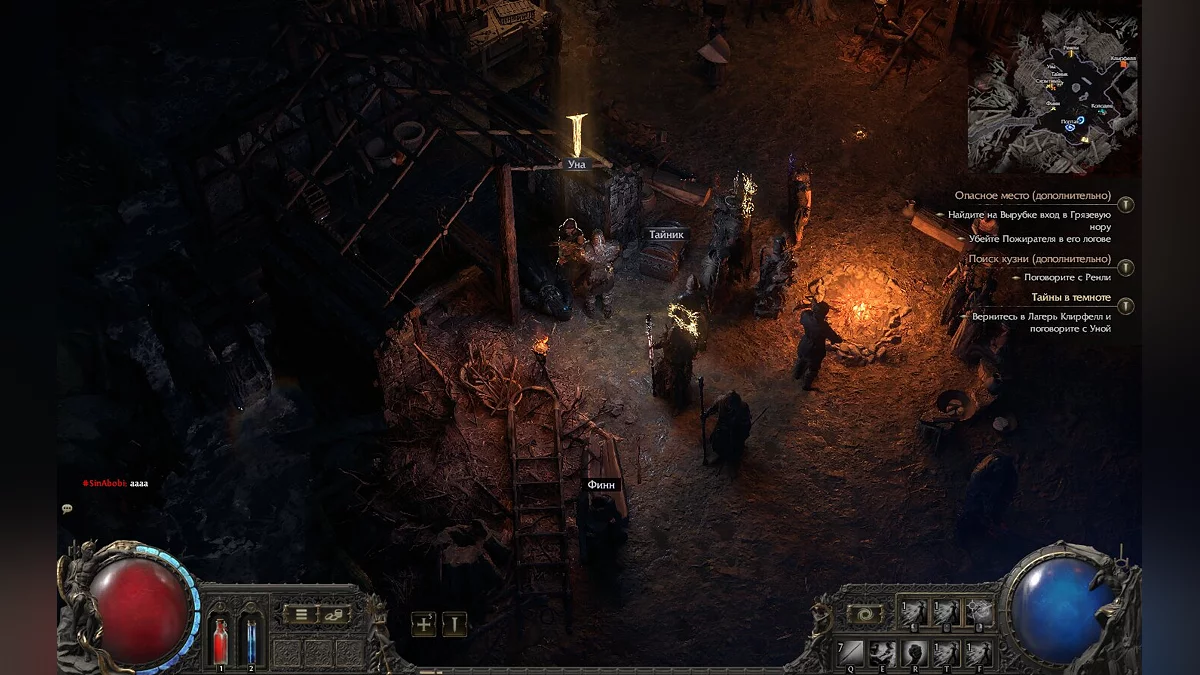 Поговоривши з усіма NPC у таборі, ви зможете розпочати другий квест першого акта. Для цього підійдіть до дівчини на ім'я Уна, яка сидить біля вогнища.