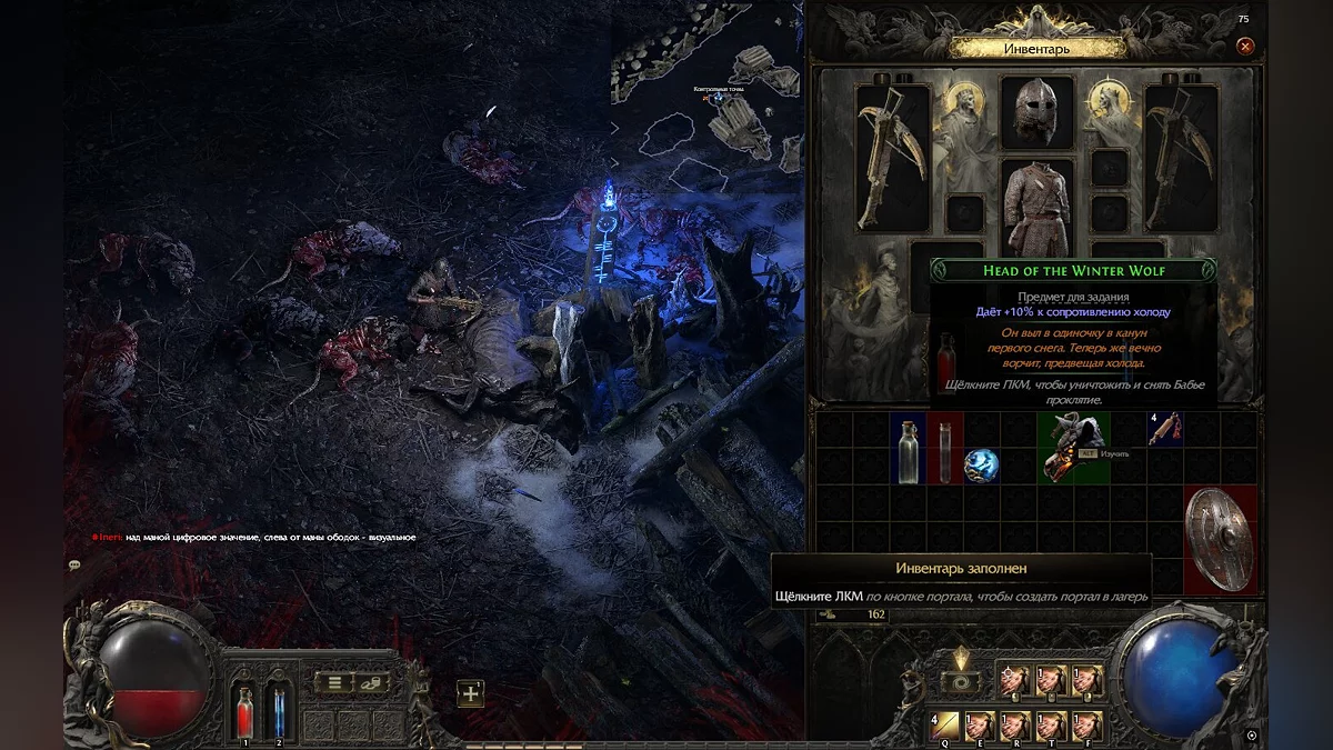 Успішно усунувши Бейру, з неї випаде Голова Зимового Вовка. Щоб використати цей предмет, відкрийте інвентар (клавіша I), наведіть курсор на предмет і натисніть праву кнопку миші. Завдяки цим діям ви отримаєте +10 до опору холоду. Крім цього, ви отримаєте випадкові предмети, які можуть виявитися корисними в подальшому проходженні, а також монети і обладнання.