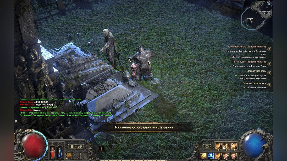 Взаємодіючи з входом у кладовище, ви опинитеся на поверхні. Тут ви зможете поговорити з чоловіком на ім'я Ланкланн Потеряний, який дасть вам ще один сюжетний квест, який буде розвиватися паралельно з поточним.