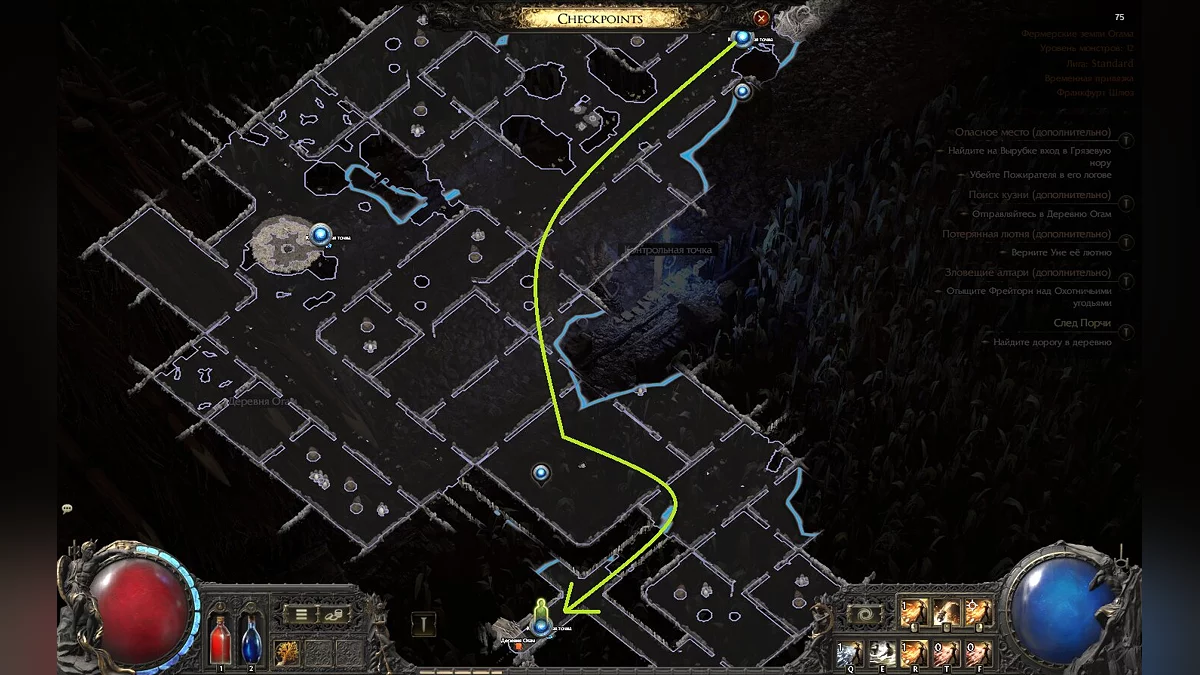 Саме перебування села у нас зайняло близько 30 хвилин, оскільки локація досить велика, тим більше з огляду на кількість мобів, що тут знаходиться, та їх рівень сили. Щоб ви змогли пройти трохи швидше, нижче ми показали вам оптимальний шлях. Прибувши, увійдіть до села.