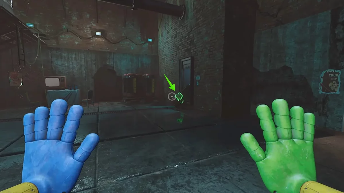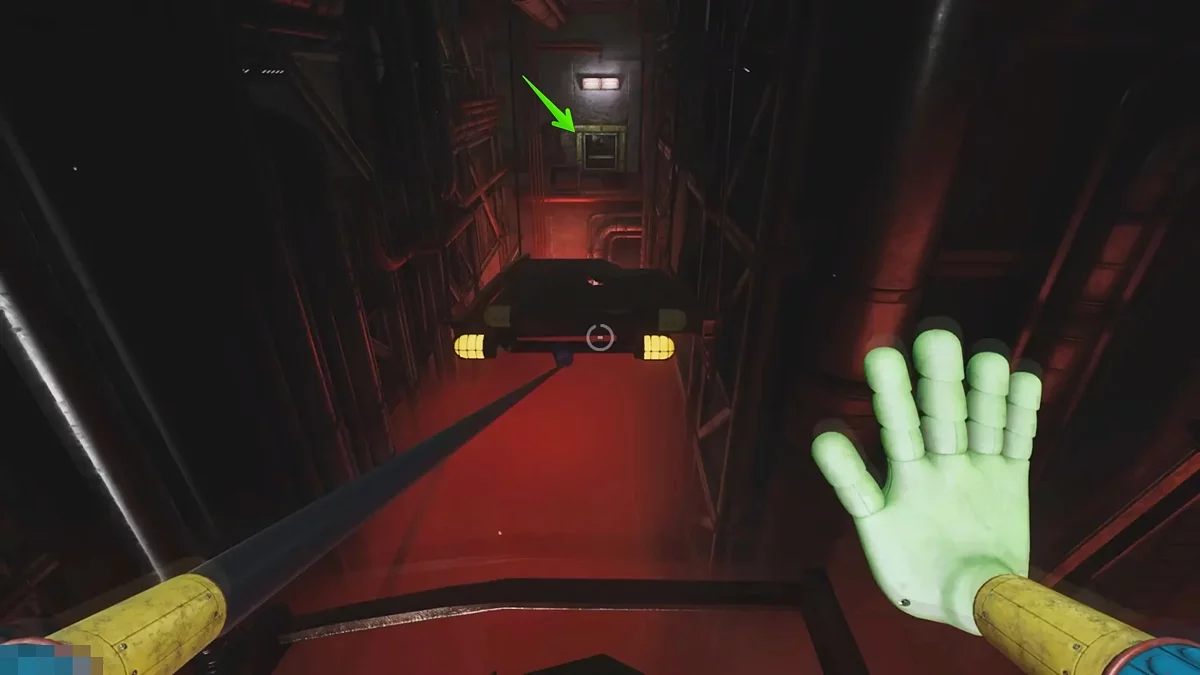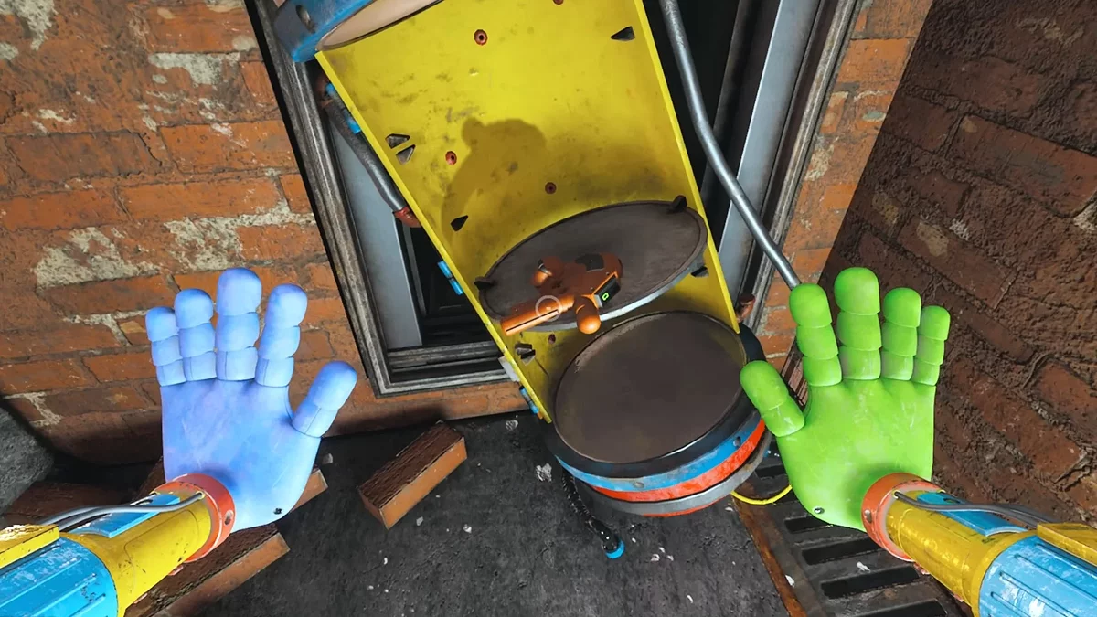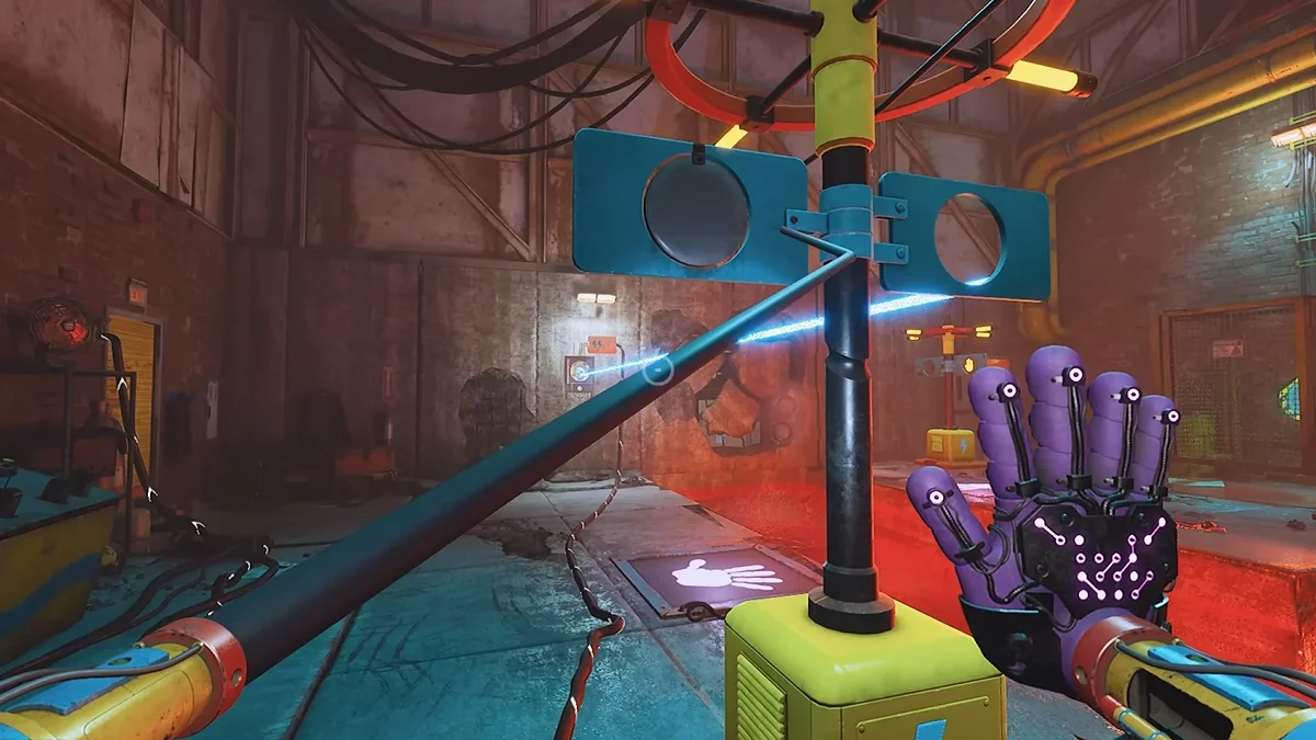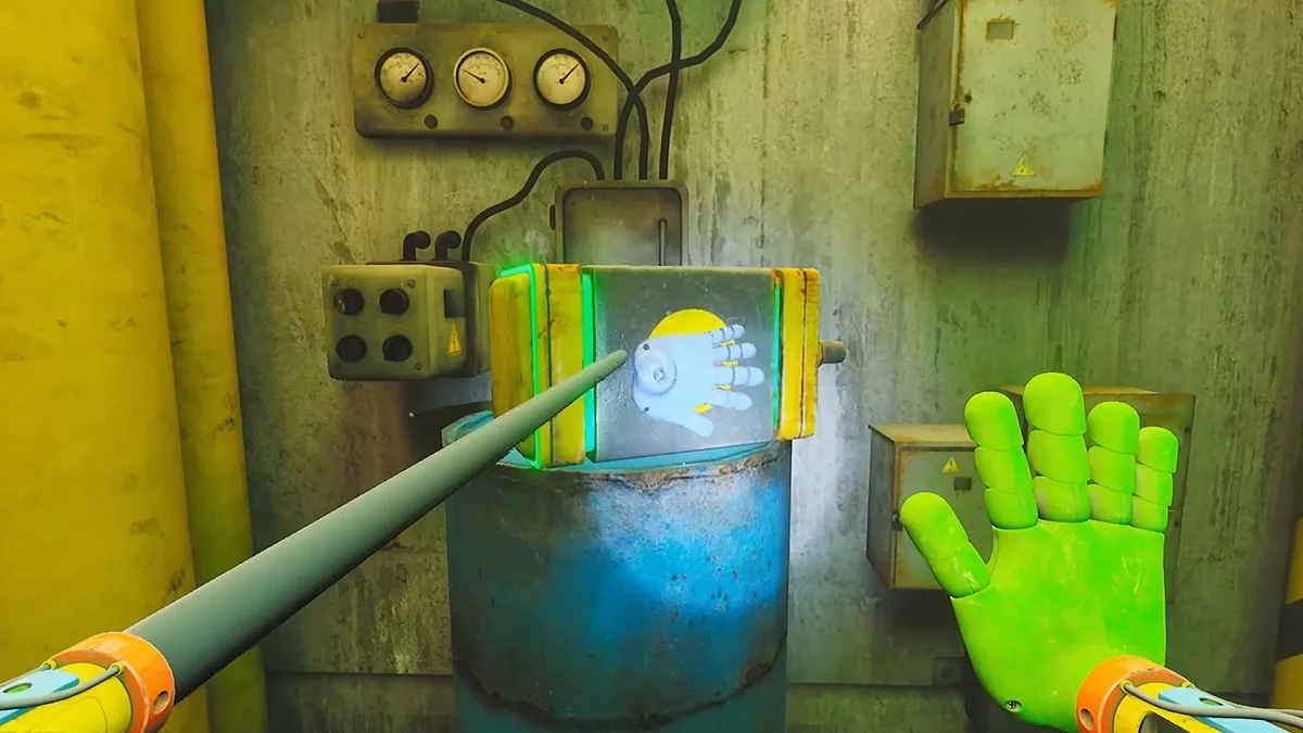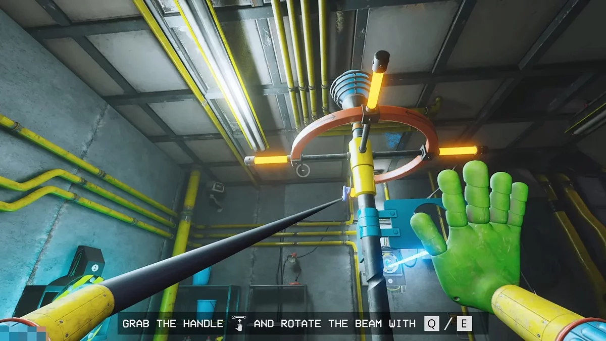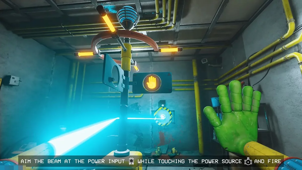 Виходьте і за допомогою фіолетової руки підстрибніть вище (ви побачите відповідне зображення на підлозі). У сусідній кімнаті виконайте ті ж дії і підтягніть до себе платформу, потім опустіть її вниз. Після цього підстрибніть на жовті труби і схопіть платформу, щоб підтягнути її лівіше.