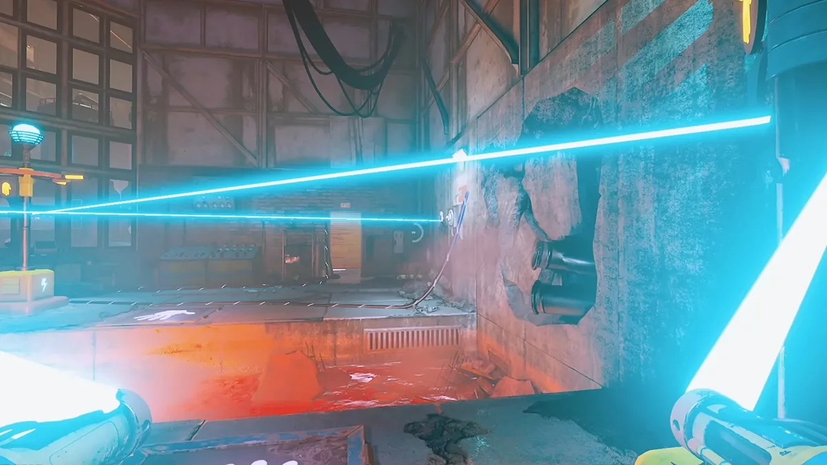 Поверніть дальню стійку, щоб промінь був спрямований на розетку. Друга ж стійка повинна дивитися в бік першої. Підстрибніть на батуті і взаємодійте з джерелом живлення, потім направте другу руку на другу стійку.
