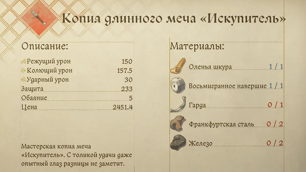 В результаті у ваших руках опиниться меч «Іскупитель» — оригінал і його точна копія.