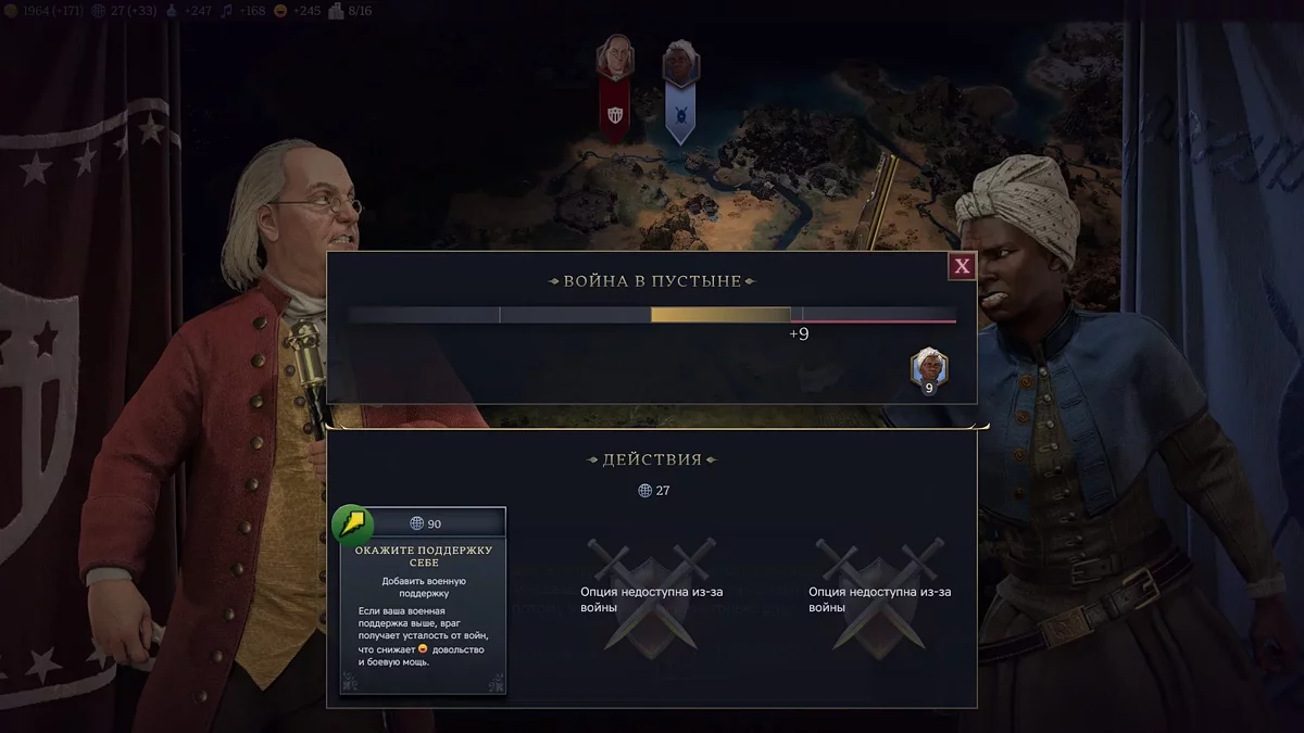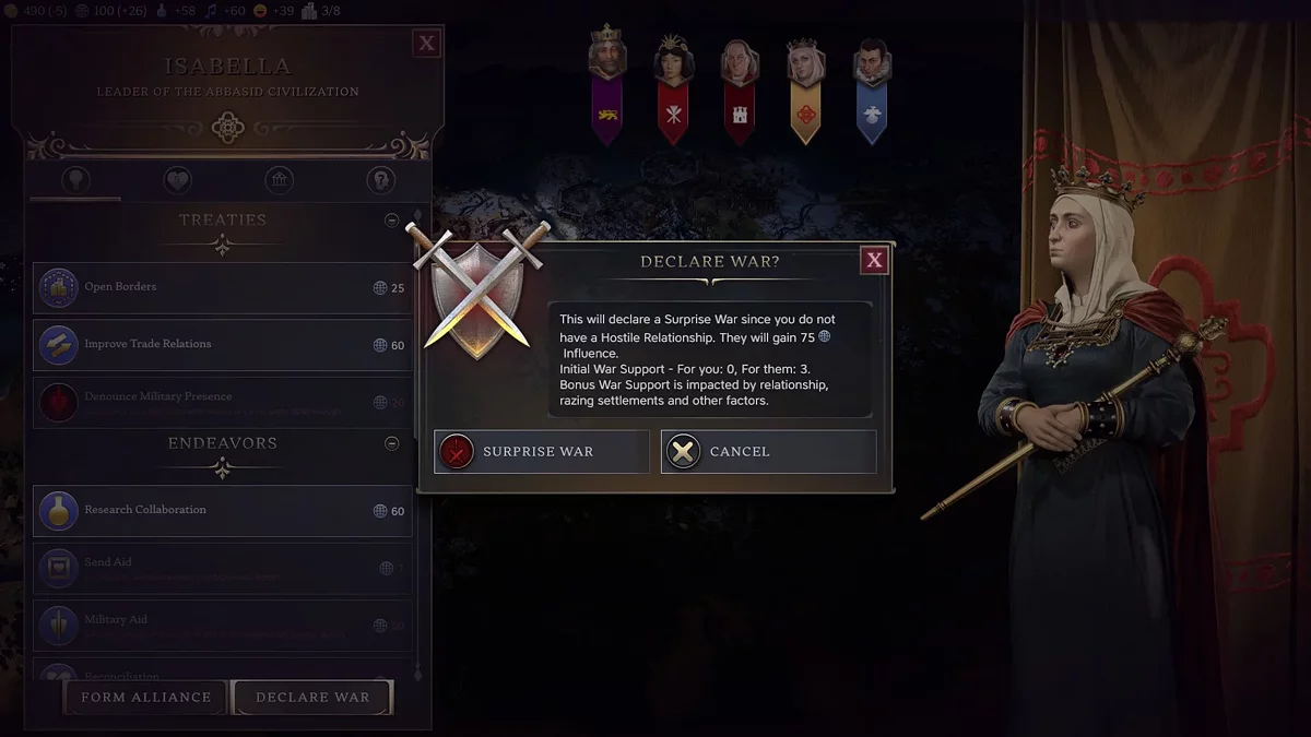 Також вплив можна отримати, якщо опонент вирішив оголосити несподівану війну без причини. Але таке трапляється рідко.