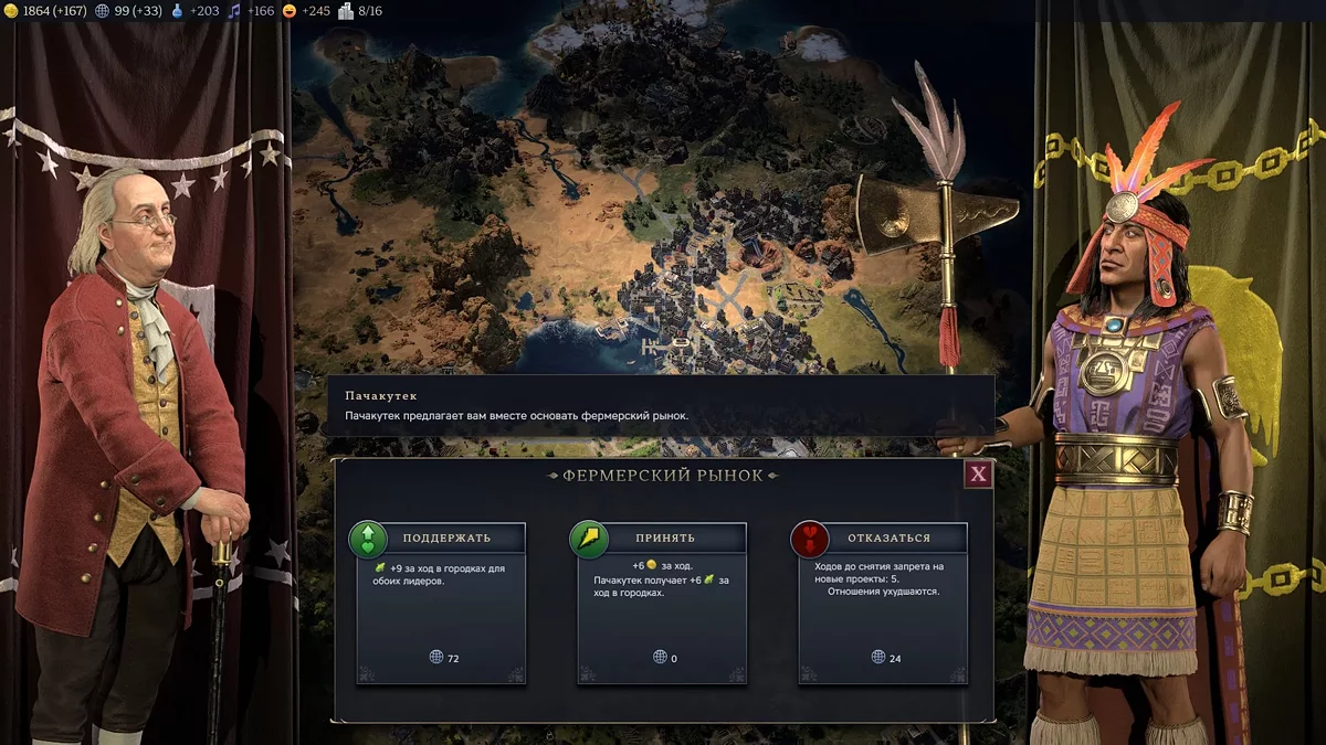 Почнемо з того, що розповімо про роботу впливу та його функціонал. За допомогою ресурсу можна укладати вигідні угоди з сусідами, приймати або відхиляти їх пропозиції, вводити санкції та розвивати міста-держави.