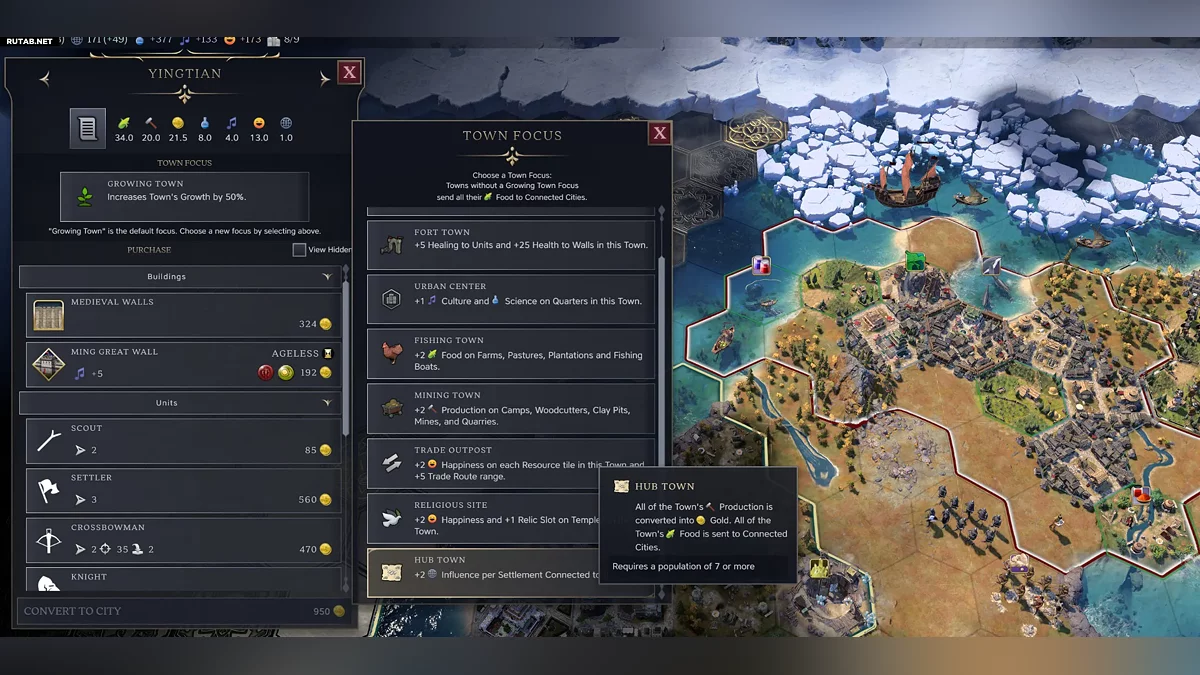 Ще можна будувати спеціальні містечка, заточені під фарм впливу. Так звані хаби. Щоб отримати такий, потрібно заснувати невеличке містечко і присвоїти йому відповідну спеціалізацію. Тільки одне таке містечко буде приносити +2 впливу за кожне поселення, з яким з'єднано.