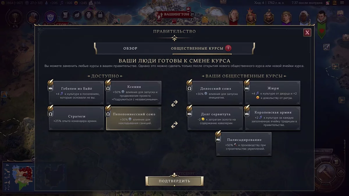- Дає +4 впливу за кожне місто-державу, сюзереном якого ви є.