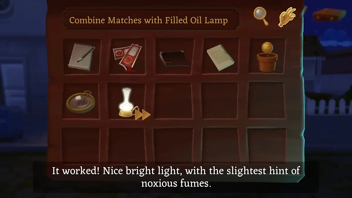Повертаємося на другу вулицю і йдемо до сусіда. Зараз його не буде на ґанку, тож можемо оглянути стіл і забрати каністру з паливом. Її можна об'єднати з знайденою раніше в домі Лени масляною лампою. Потім застосовуємо на лампі сірники, щоб запалити її. Таким чином ми зможемо потрапити в ліс.