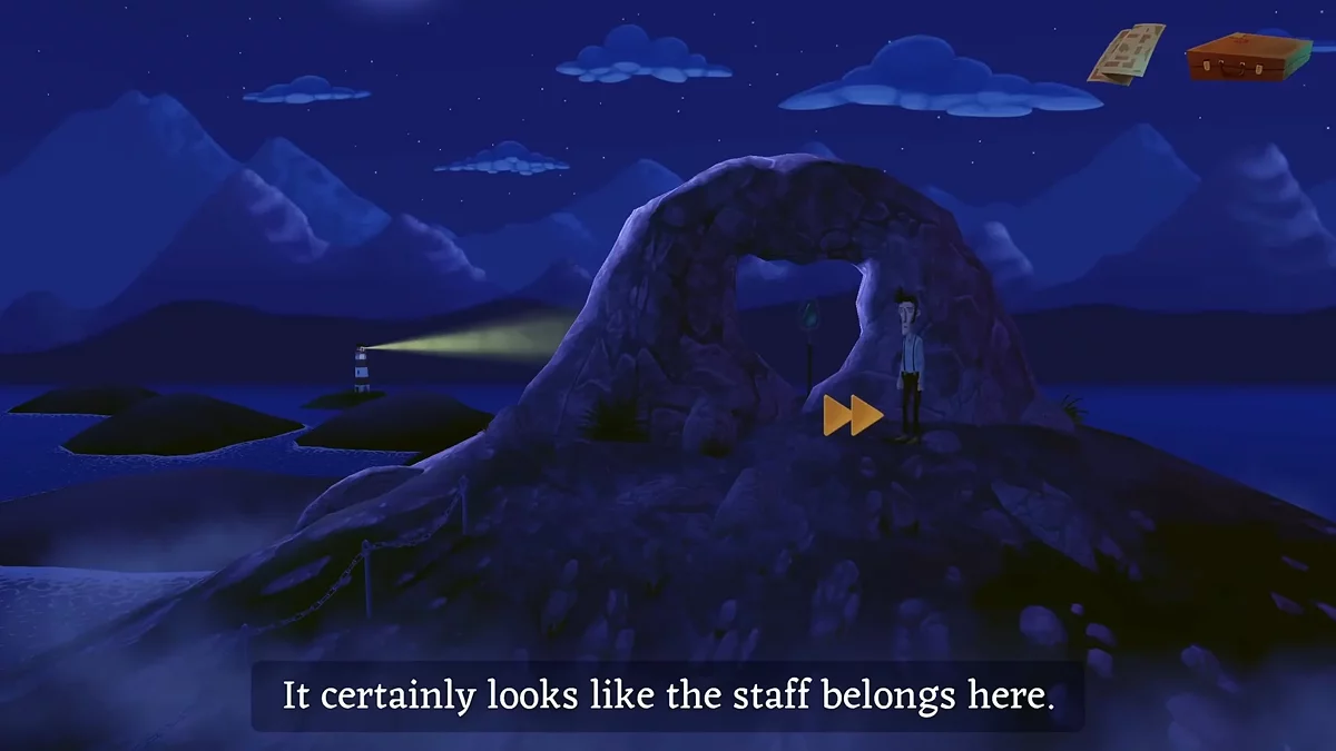 Напевно, ви вже зрозуміли, де можна використати лопатку. Вирушайте на берег і застосуйте предмет на човні. Незабаром ви опинитеся на маяку. Головні двері зачинені, але ви можете використати якір з мотузкою, щоб закріпити їх на сходах ліворуч від входу і спустити сходи вниз. Ввійдіть у будівлю і спустіться на перший поверх. На столі заберіть ручний дриль.
