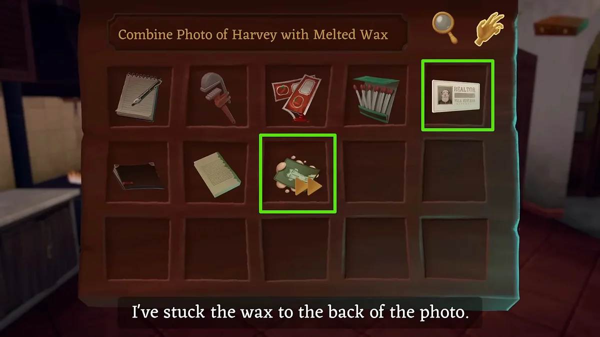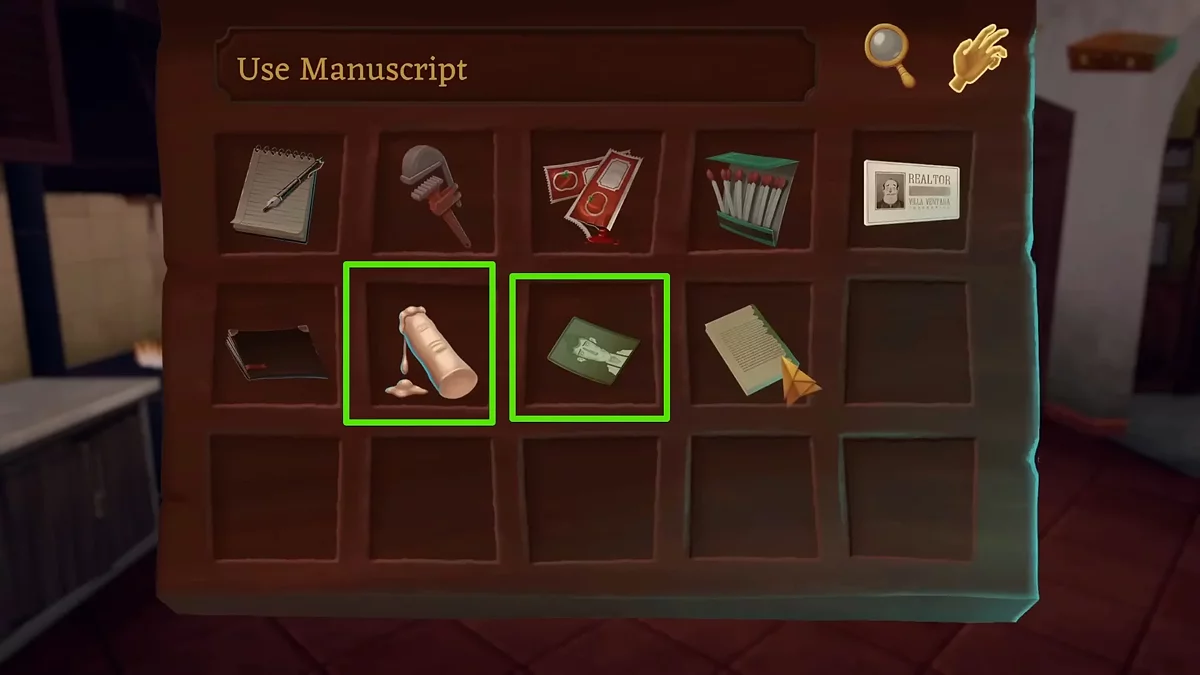 Поверніться в будинок з замкненим ріелтором, використайте сірники на газовій плиті, потім застосуйте на вогні отриманий палець з воску. За допомогою ножиць слід вирізати фотографію з рукопису головного героя і наклеїти на картку агента з продажу.