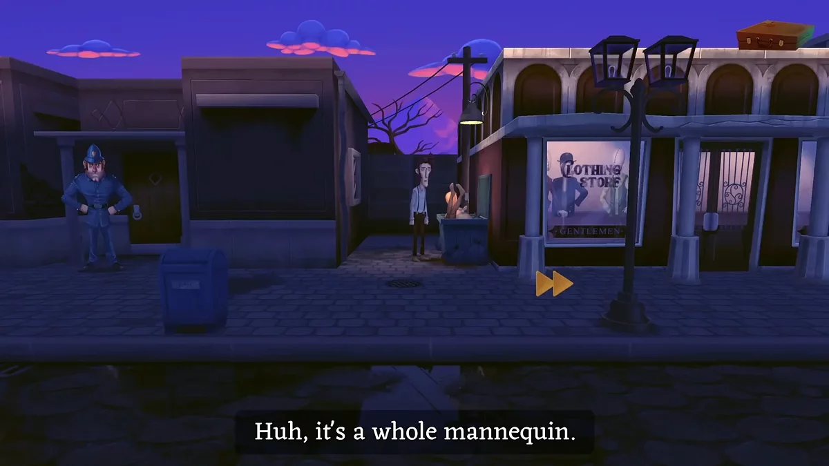 Опиняємося біля дому Лени. Підбираємо манекен за розбитою вітриною і самокат трохи далі по вулиці. З іншого боку вулиці забираємо оголошення і одяг з білизняного мотузка. Об'єднуємо всі предмети в інвентарі і застосовуємо отримане на поліцейському.