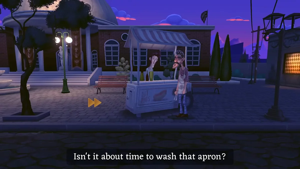 Трохи далі від цукеркового магазину ви зустрінете байкера. Задайте йому доступні питання, але поки відмовтеся від туру на мотоциклі. Пройдіть ще правіше і поспілкуйтеся з продавцем хот-догів. Оскільки у вас немає грошей, торговець відмовиться робити для вас хот-дог, але ви можете попросити щось безкоштовно: заберіть пакетики з кетчупом і задайте інші питання.