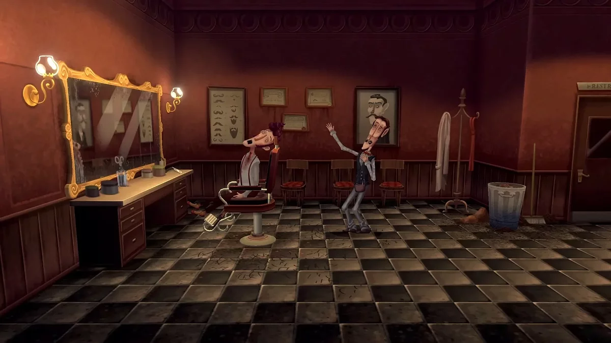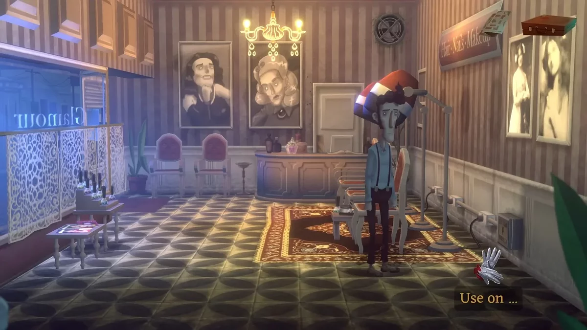 У наступній кімнаті заберіть килимок і рушник, повісьте останній предмет на папугу, а під ним візьміть ножиці. Застосуйте їх на кришці люка в підлозі і закрийте дірку килимком. Увімкніть апарат зліва і скажіть про це перукарю.