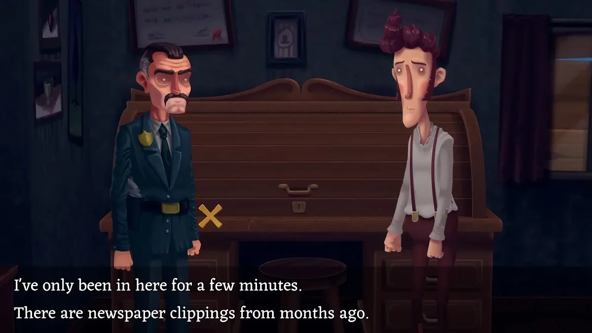 Обстежте правий кут килима, адже його можна відсунути і отримати маленький ключ. Цей ключ використовується на зачиненому столі позаду головного героя, якщо ви стоїте біля килима. Як тільки ви спробуєте відкрити стіл, у кімнату увійде поліцейський. Скажіть йому своє справжнє ім'я, тоді письменник зможе вручити поліцейському візитку, потім відповідайте, що перебуваєте тут всього кілька хвилин. Також відповідайте на наступне питання, що почули своє ім'я по радіо, тому вирішили зайти.