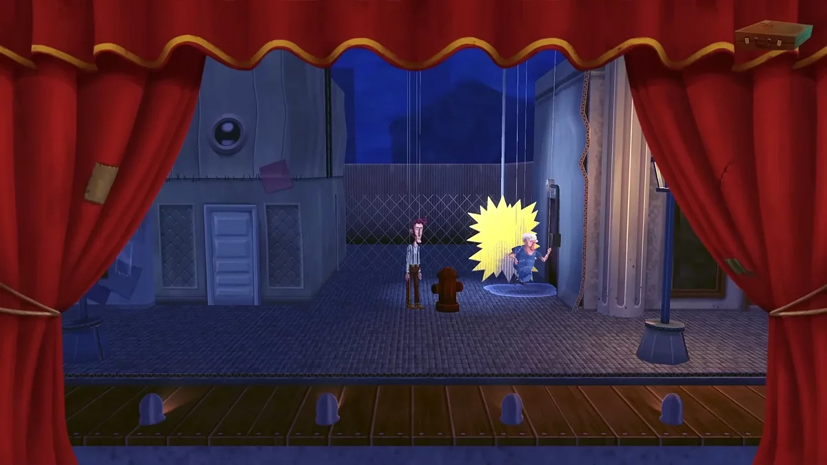 Далі по вулиці ви знайдете будівлю казино. Увійдіть у холл і біля виходу візьміть коробок сірників. Зараз тут робити нічого, оскільки у протагоніста немає ні фішок, ні грошей. Виходьте і йдіть праворуч по вулиці, поки не наткнетеся на книжковий магазин. Біля входу ви побачите парасольку — заберіть її, потім поспілкуйтеся з продавцем.