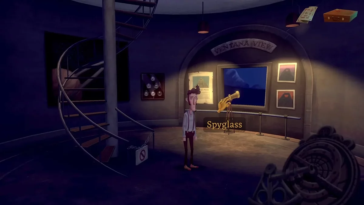 Після бесіди пройдіть до кінця вулиці вправо і знайдіть прохід до обсерваторії. Задайте гіду всі доступні питання, щоб отримати порожній горщик, і взаємодійте з підзорною трубою. Щоб отримати її в свій інвентар, скористайтеся знайденим раніше в пральні газовим ключем. Також огляньте шафку з компасами лівіше і заберіть один.