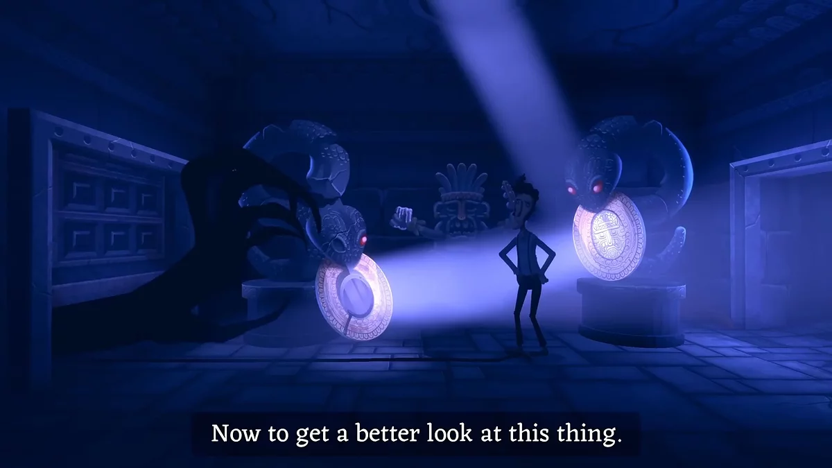 Проте всередині ви знайдете лише зруйновані сонячні годинники та золотий ідол. Якщо підберете останній, вхідні двері закриються. Поки що тут нічого робити — повертаємось у місто.