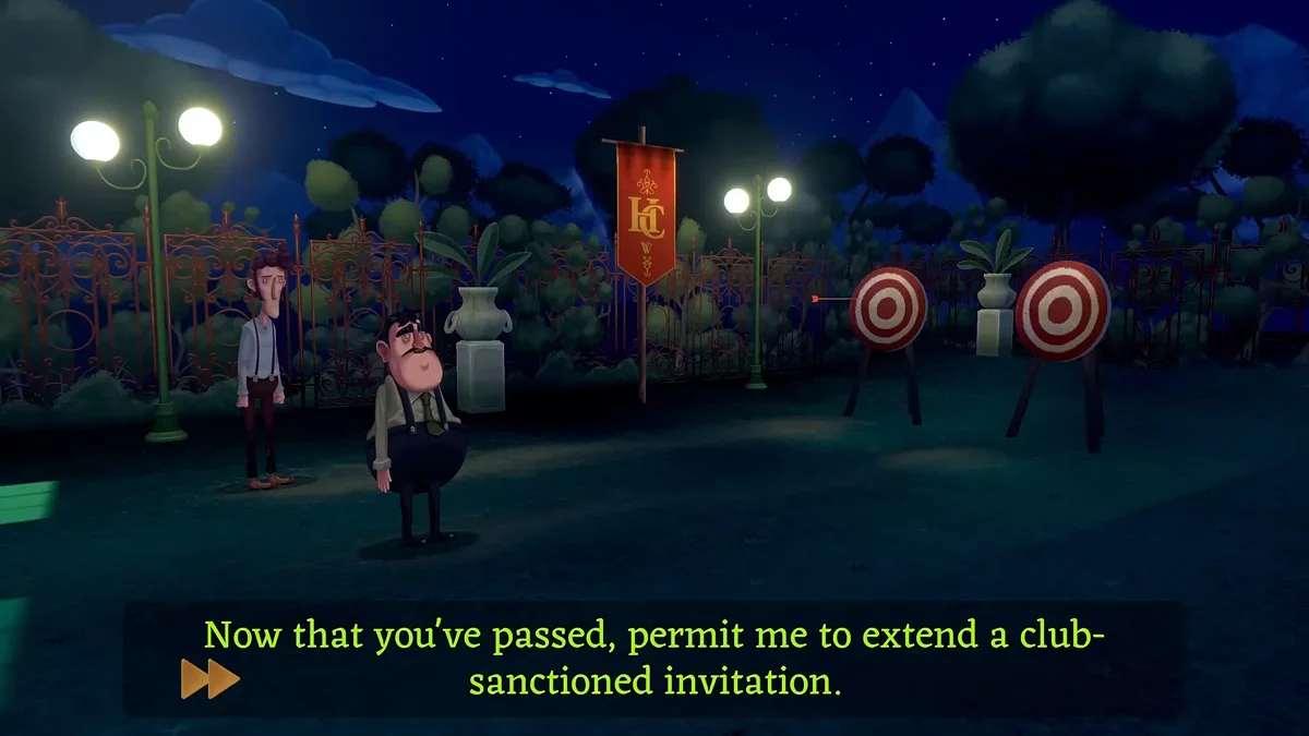 Переміщуємося на першу вулицю і слідуємо в кінець, щоб дістатися до мисливського клубу. Можете прослухати кілька діалогів аристократів і одруженої пари, потім зверніться до снобів, які стоять біля каміна. Після розмови підійдіть до Гордона, який представить вам президента клубу Паула Фрея. Вони відмовляться приймати головного героя до свого клубу і виставлять на вулицю. Проте у нас вже є лом — можемо застосувати його на саблях праворуч від входу.