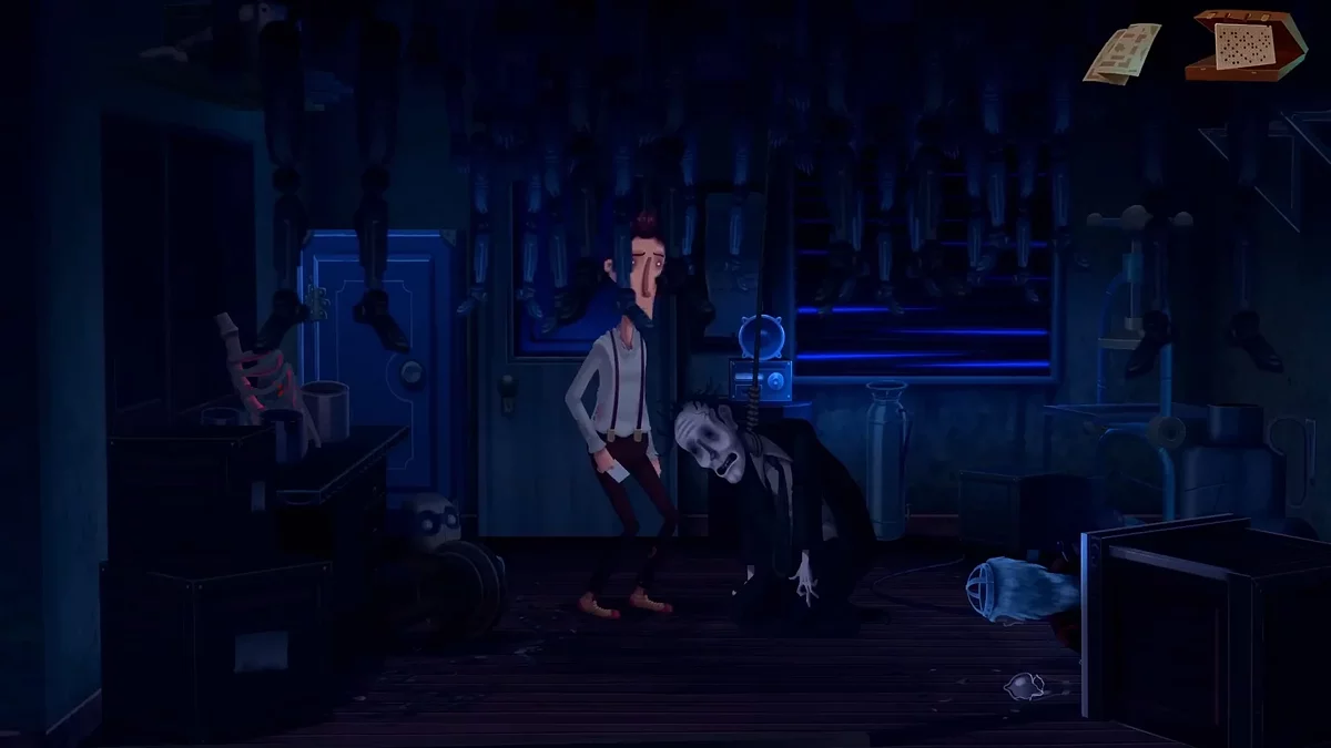 Тепер заберіть ключ від годинника під величезними очима, щоб об'єднати його з музичною шкатулкою. У сусідній кімнаті будуть парити й інші органи — застосуйте музичну шкатулку на вухах. Вони звільнять прохід до стійки, де можна підібрати трубку.