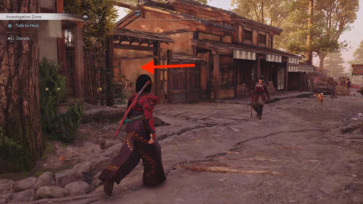 Існує й інший спосіб потрапити всередину: трохи правіше від арки є розсувні двері між плакатами, які ведуть відразу до противників і Хейдзі. Проте вони позбавляють вас переваги, адже так ви не зможете напасти з укриття або з висоти. Поговоривши з персонажем, ви відкриєте можливість покращувати вашу зброю та броню.
