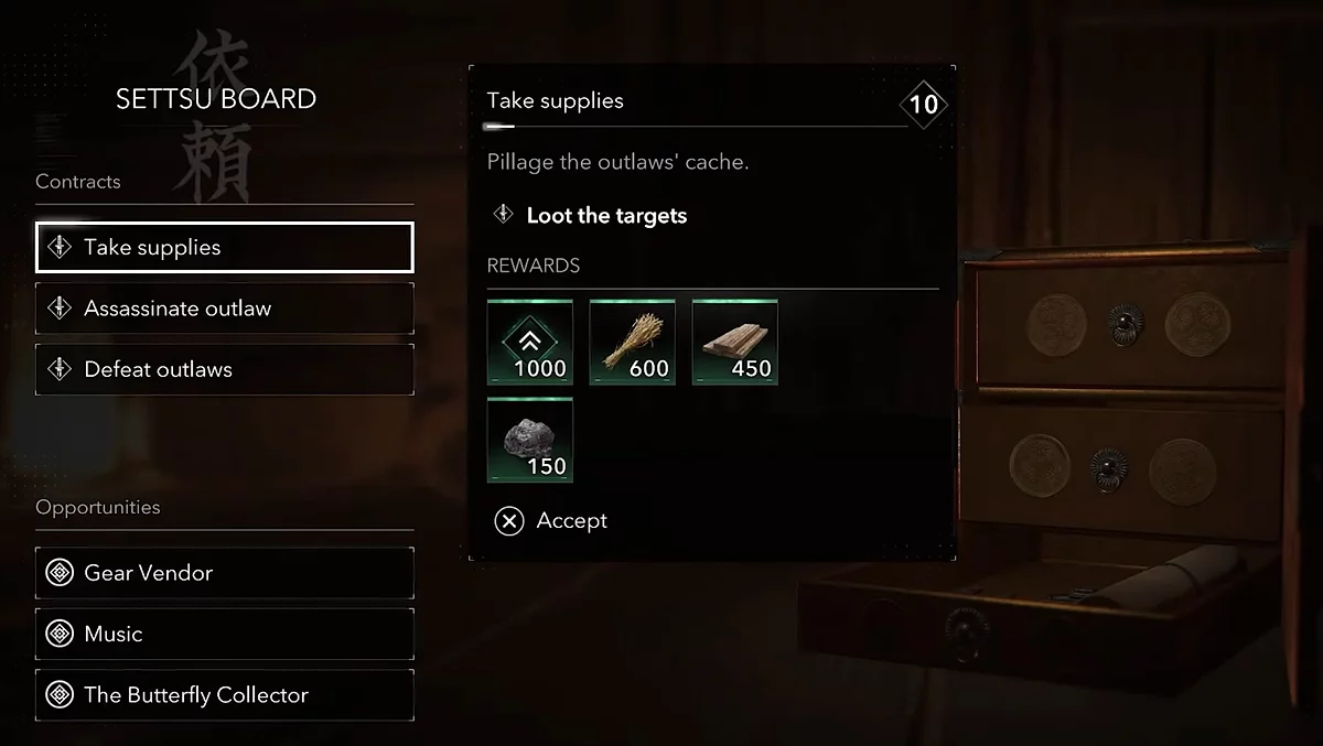 Ви завжди можете взяти на виконання замовлення у вашому притулку або в спеціальних місцях під назвою Какурэга в містах. Звертайте увагу на ті доручення, які дають найбільше нагород: зазвичай це замовлення на тихе вбивство або викрадення запасів.