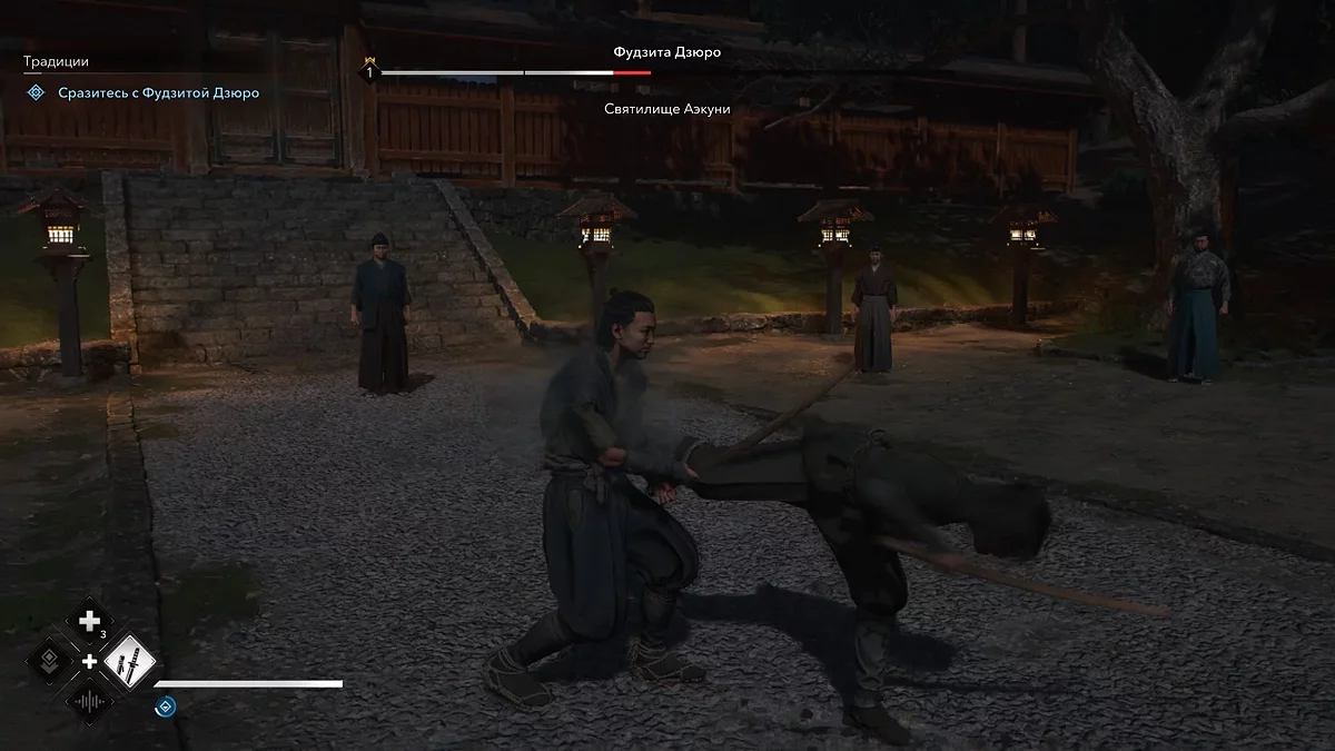 Добравшись до потрібного місця, дивіться відеоролик на движку, після якого почнеться бій з великим воїном. Цей ворог використовує прийом з чотирьох атак підряд, які ви можете парирувати. Якщо він розізлиться, спробує скористатися атакою, яку не можна відбити: його меч буде світитися червоним. В цей момент рекомендуємо скористатися ухиленням, в іншому випадку отримаєте багато шкоди.
