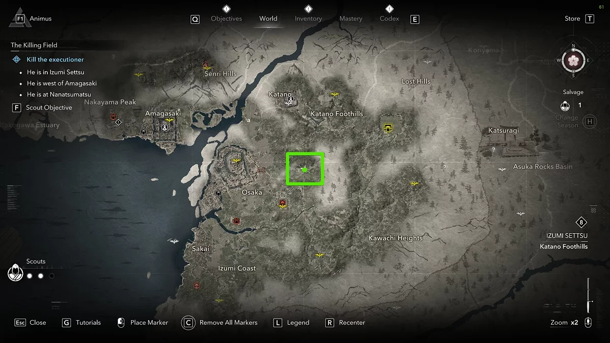 Чергове місце для кудзі-кірі розташоване на сході від замку Осака. Ви можете спостерігати знак питання в цій області, якщо раніше не проходили повз або не проїжджали на коні.