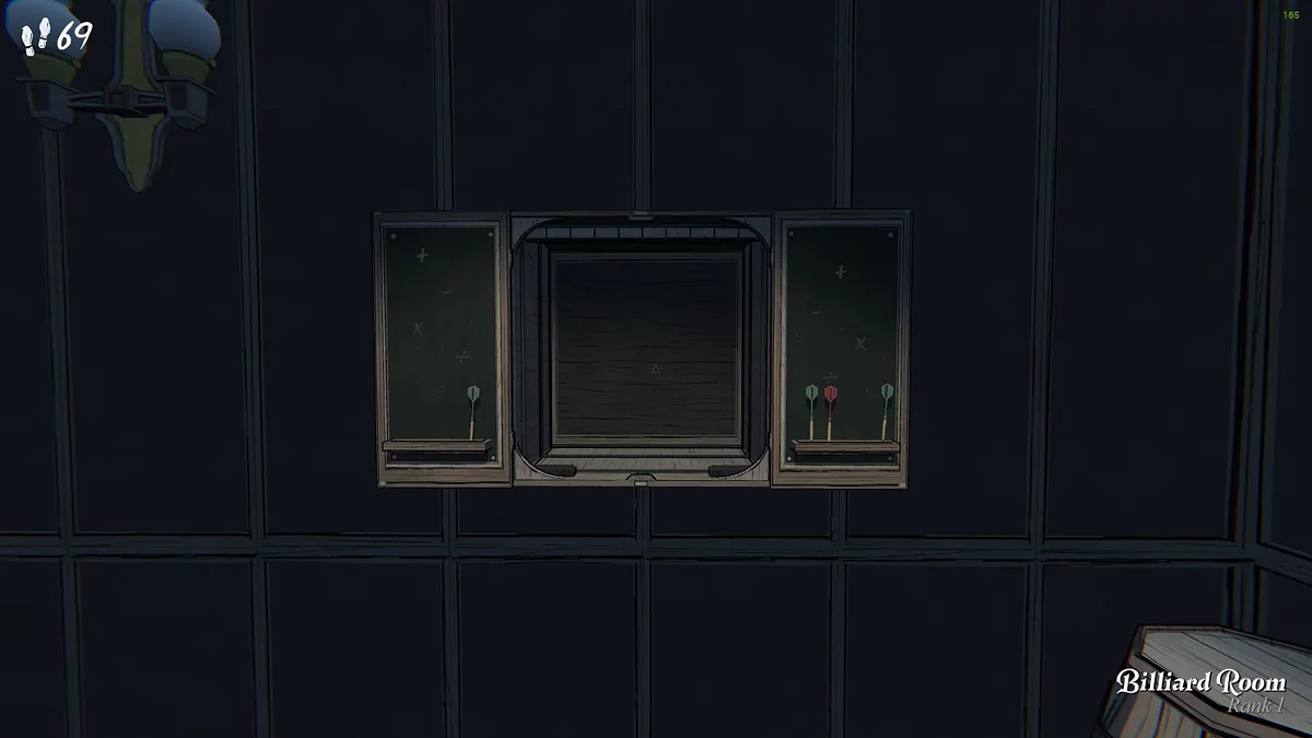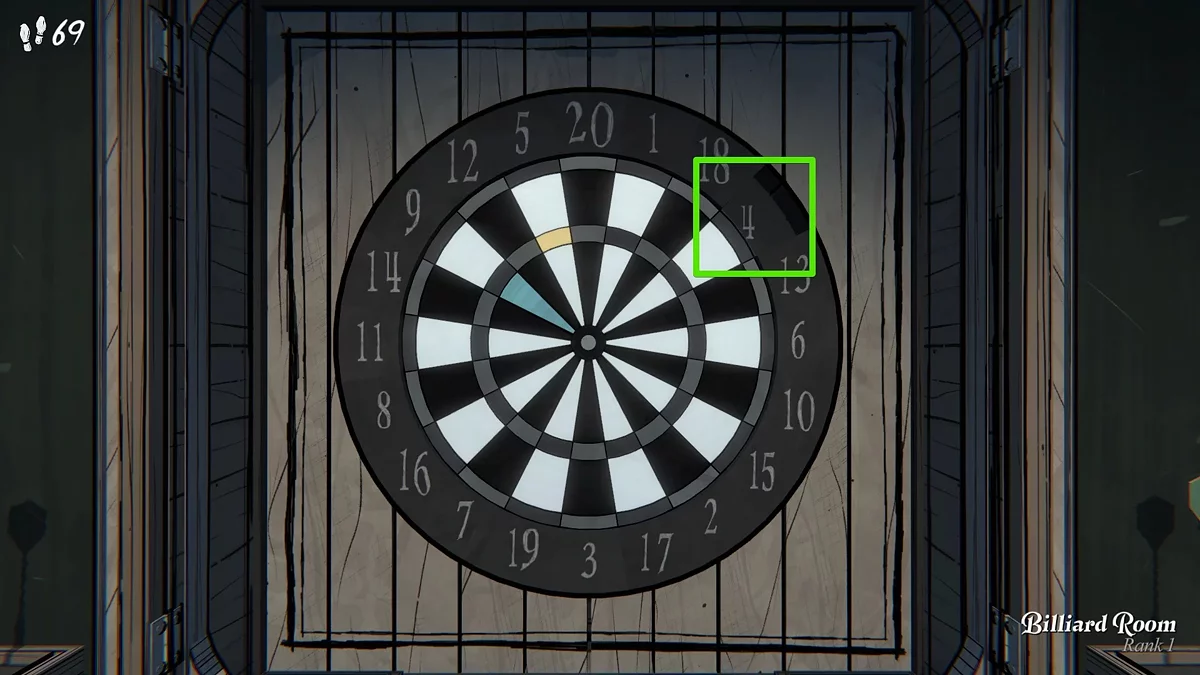 Загадку з дартсом можна знайти в більярдній кімнаті. Це не найпоширеніша кімната в грі, наприклад, ми змогли отримати її лише на четвертий день дослідження маєтку. Для доступу до неї не потрібні ключі, алмази чи монети, достатньо того, щоб вона просто з'явилася на плані.
