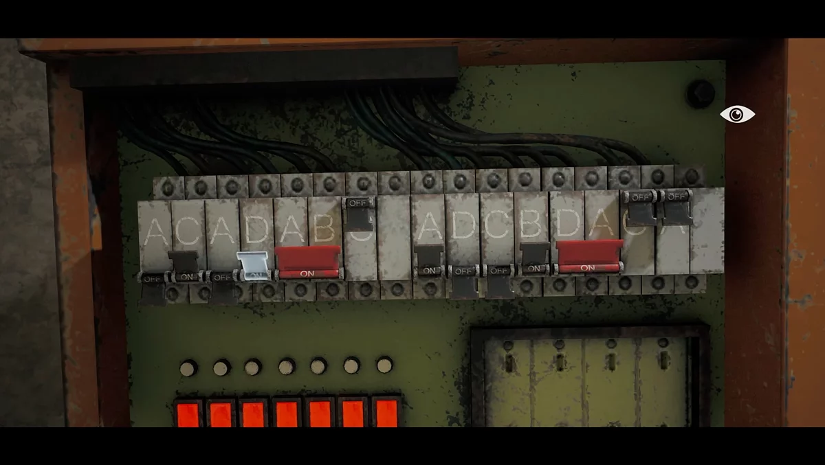 Знищивши монстра, вставляємо всі запобіжники на місце і підходимо до перемикачів справа від двері. Там згадаємо числа і букви з платформи (3D-1C-2B-3A): зліва направо включимо потрібну кількість осередків, що збігаються з цифрами.