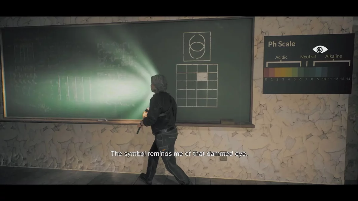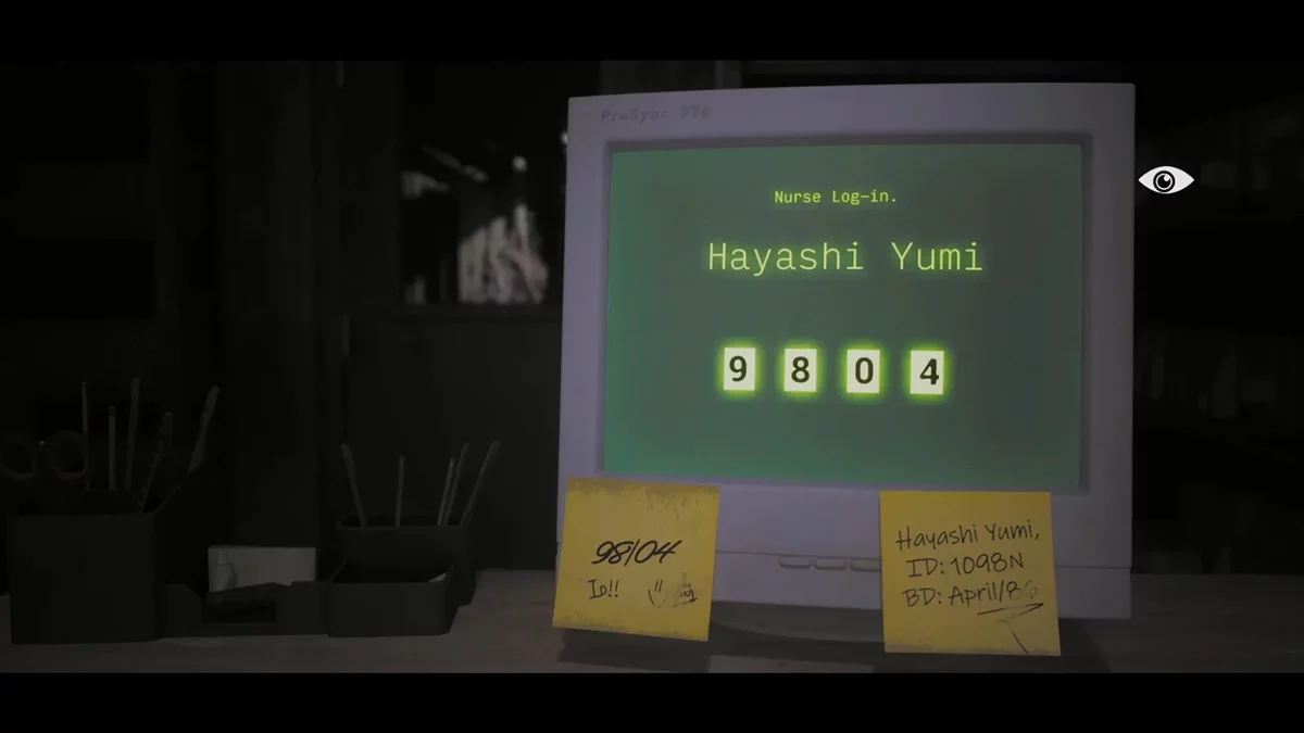 Звернемо за кут прямо перед місцем появи і зайдемо в першу двері справа. Це безпечна зона, де доступно збереження прогресу проходження. Крім того, на сусідньому столі візьміть карту передоплати. В кінці приміщення стоїть комп'ютер, пароль від якого потрібно дізнатися. Ми це вже зробили, адже це пароль Уейда Юто. На екрані з'явиться зображення, яке знадобиться для вирішення головоломки.