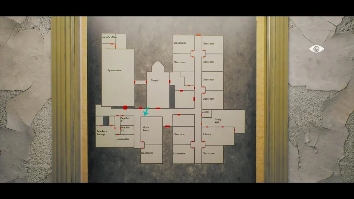 Потрапивши всередину, спочатку підійдіть до карти перед вами. Точно так само зафіксуємо її, адже вона дуже знадобиться. Першим ділом йдемо в першу вчительську (Teacher 01). Це безпечна зона, де можна зберегти проходження. На стіні помітимо червоні годинники, зупинені на 10:05. Зафіксуємо це.