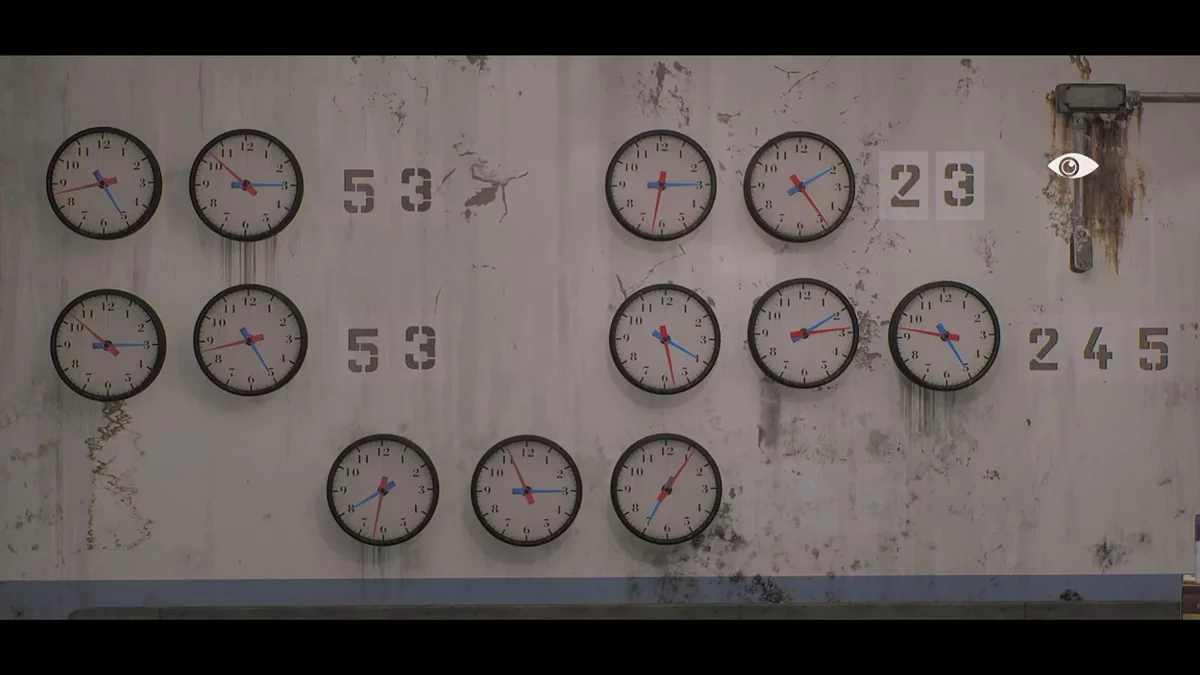 З допомогою ключа відкриємо це приміщення. На одному з столів лежить кувалда за замком. Щоб дізнатися код, підійдемо до однієї зі стін. Там висить кілька годин. Зверніть увагу, що синя хвилинна стрілка завжди вказує на конкретні хвилинні значення, а червона годинникова — на порядок розташування цифри в числі. Наприклад, останній циферблат показує сімку, яка стоїть на початку, адже друга стрілка зупинилася на одиниці. Код — 783. Відкриваємо замок і забираємо інструмент.