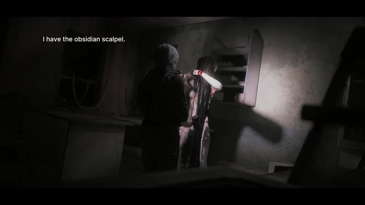 Так отримаємо щипці. У кабінеті медсестри (Nurse Room), розташованому в протилежному кутку локації, з їх допомогою отримаємо обсидиановий скальпель. Він знадобиться в сусідній операційній (Operation Room): дістанемо маленький зразок плоті.