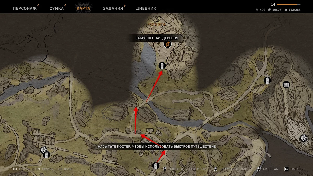 В кінці занедбаного села перед струмком поверніть направо, рухайтеся вперед і на першому повороті зійдіть наліво. Знищте розбійників і відкрийте клітку з полоненим ключами з ящика зліва від намету.