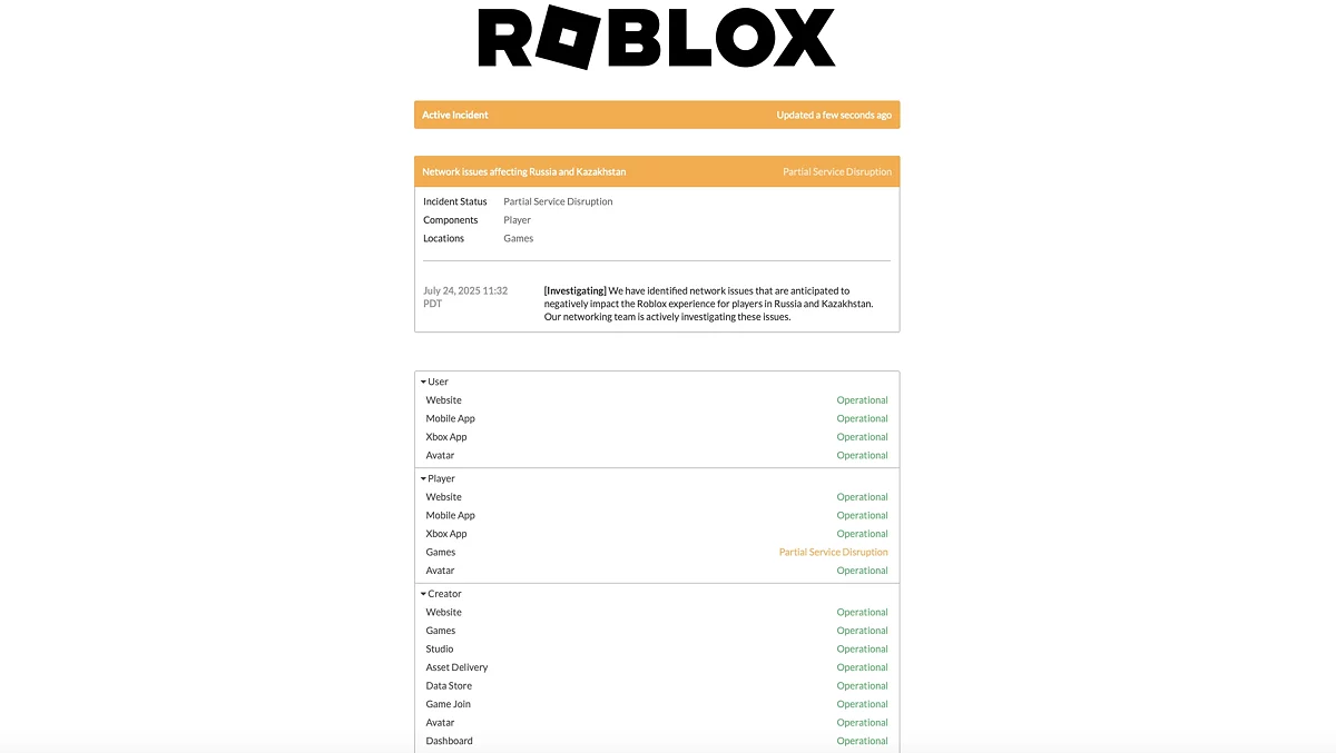 Можливо, збій виник на стороні розробників. Вивчіть стан онлайн-функцій на спеціальному сайті. Прочитайте про виниклі неполадки, про які повідомляють у верхній частині сторінки. Потім прокрутіть вниз і окремо перегляньте статус стану кожного з об'єктів, перерахованих зліва.
