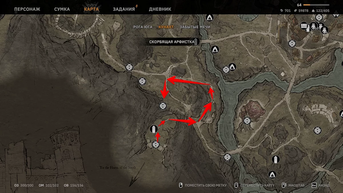 Зберіть останки арфісток і віднесіть їх до статуетки праматері (All-Mother Statue) поруч з чумним районом Кунахта. В результаті отримаєте 2 300 очок досвіду.