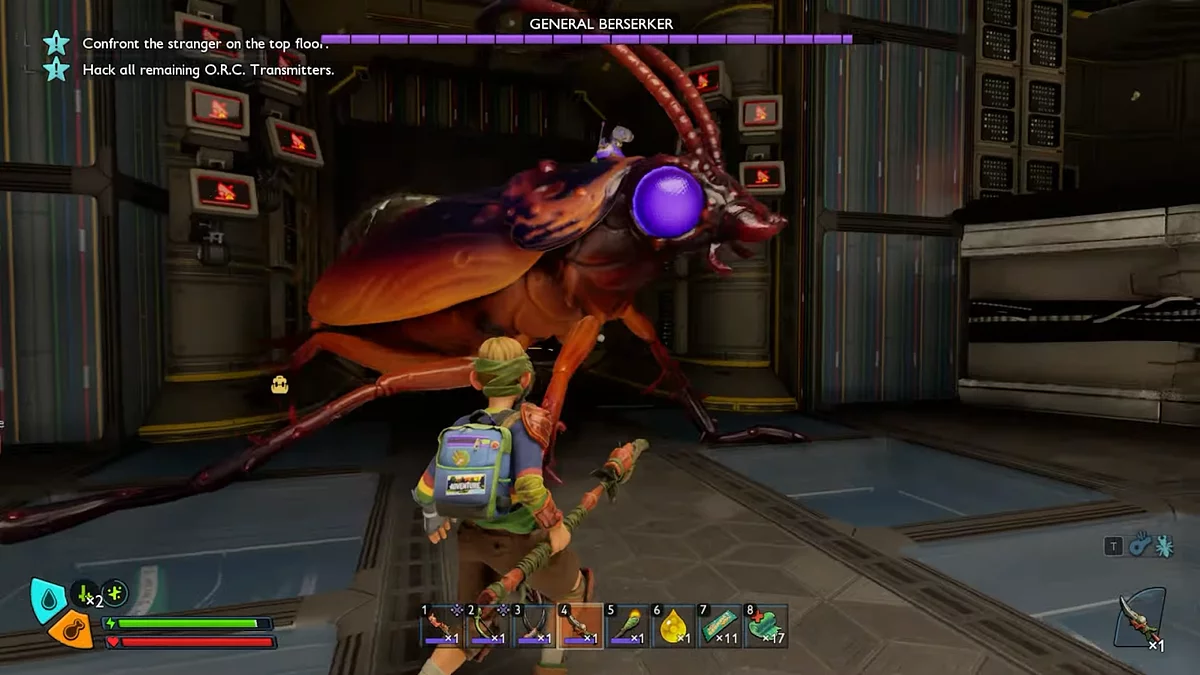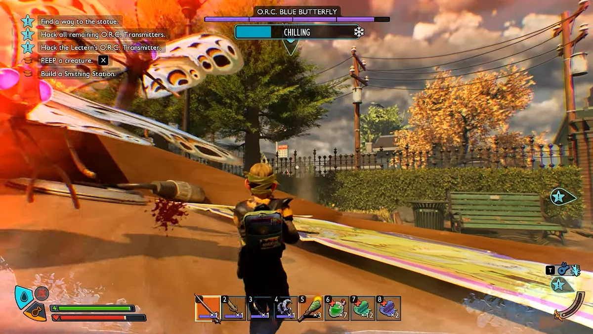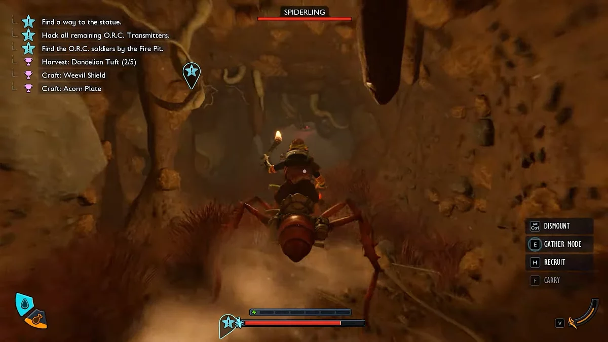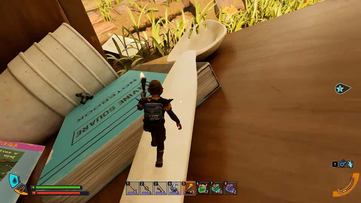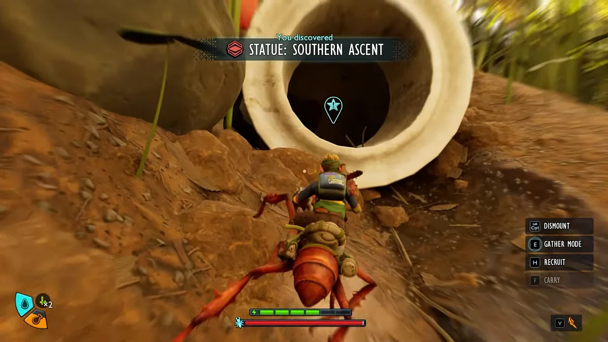 Обережно пройдіть паркур, поки не доберетеся до самого верху. Зламавши антену, спустіться вниз, не втрачаючи очок. Прослідуйте до нової мітки, де вам знову потрібно буде перемогти досить сильну бджолу. Там же ви можете зібрати шматочки чорниці для покращення вашого мульти-інструмента до другого рівня. Звісно, вам ще знадобиться оболонка таргана, але його досить легко знайти в зоні пікніка або смітника.