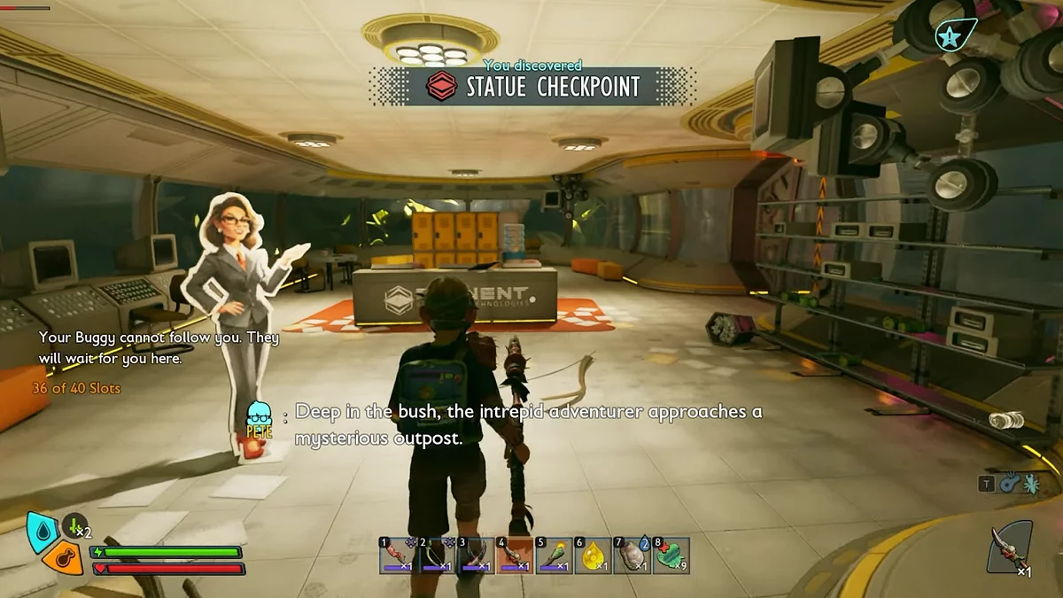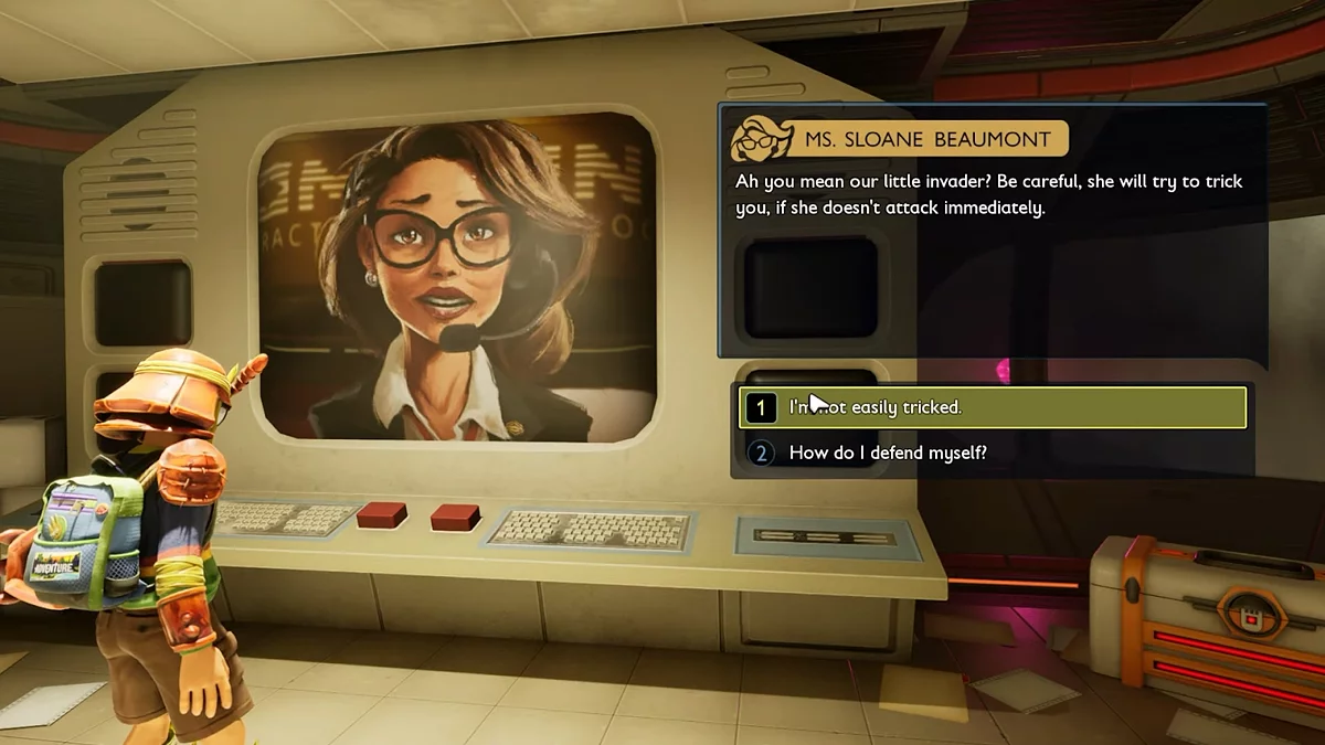 Поспілкувавшись з антагоністкою, ви отримаєте відповіді на деякі сюжетні питання. Після цього вона розблокує вам спеціальну станцію, де ви зможете прокачати свій мультиінструмент. Справа від екрану заберіть корисний предмет у невеликому скрині.