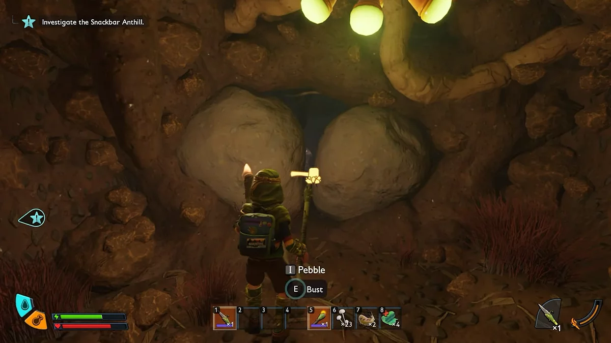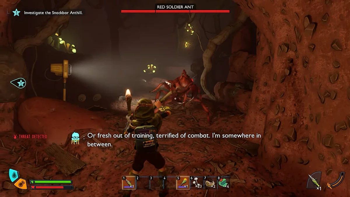 У тунелі буде сидіти червоний мураха-солдат. Не варто боятися його: отбивайте атаки з допомогою блоку та обережно контратакуйте. У нього не так багато очок здоров'я.