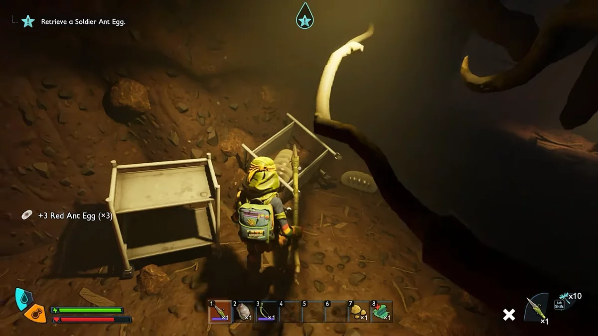 Побудувавши інкубатор, вирушайте на пошуки яєць для нього. Класичною синьою міткою буде позначено мурашине гніздо неподалік. Завітайте туди, заздалегідь виготовивши мурашину броню, адже вона може вам знадобитися.