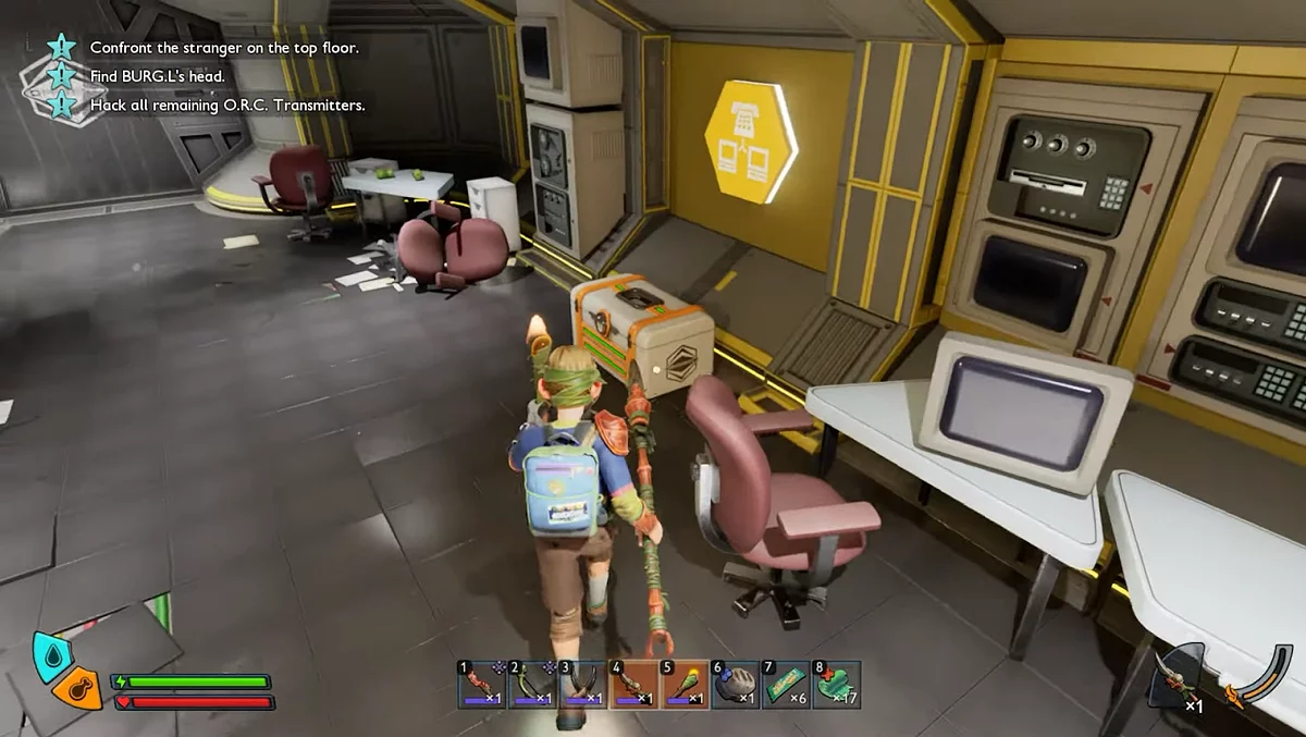 Після перемоги ви знайдете голову BURG.L, а також зателефонуєте Слоун. Обшукайте всі кімнати верхнього поверху, щоб зібрати корисні предмети. Ваша пригода тільки починається.